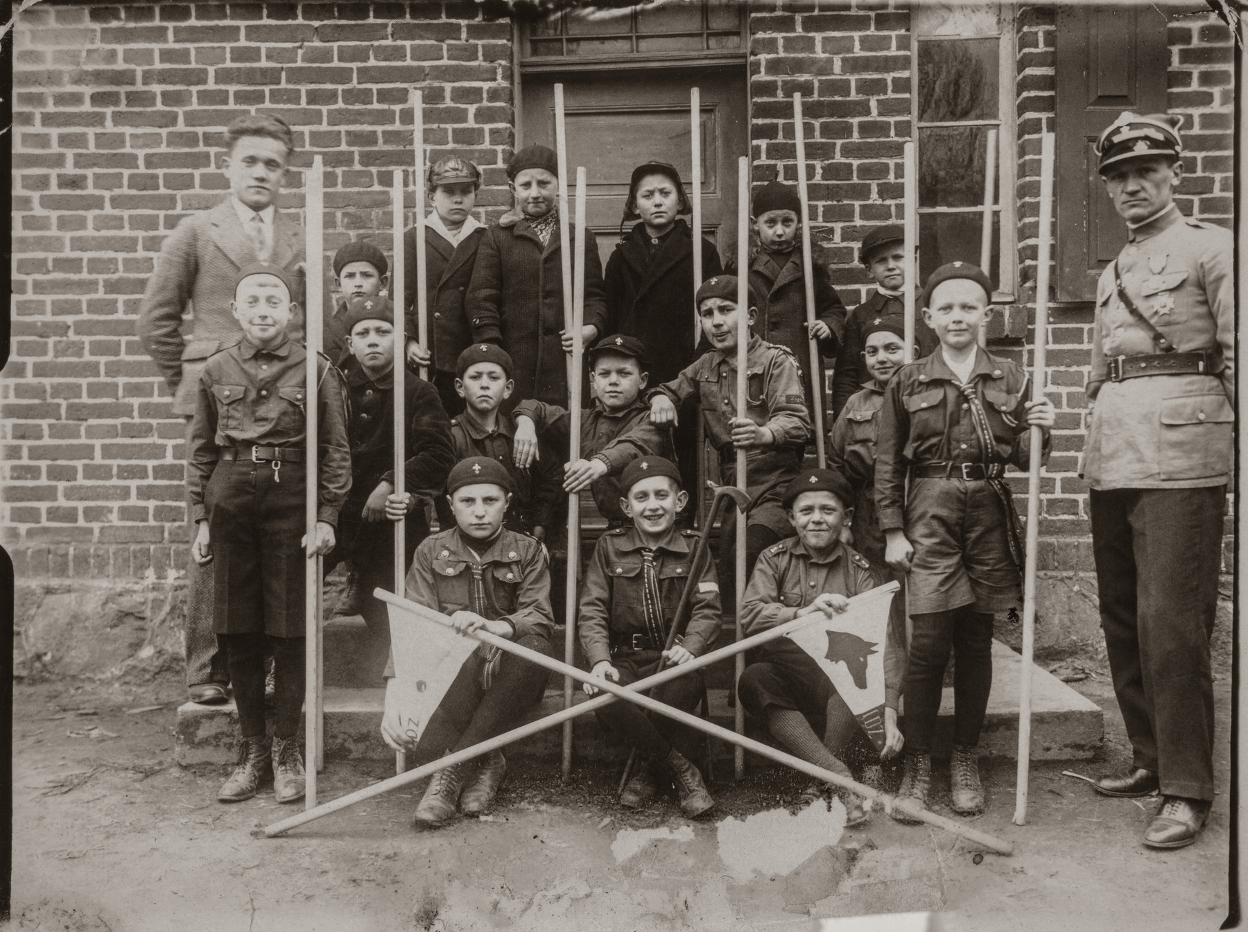 Grupa harcerzy z laskami skautowskimi, 1936 r. Zbiór por. Romana Zygmunta Skwary -