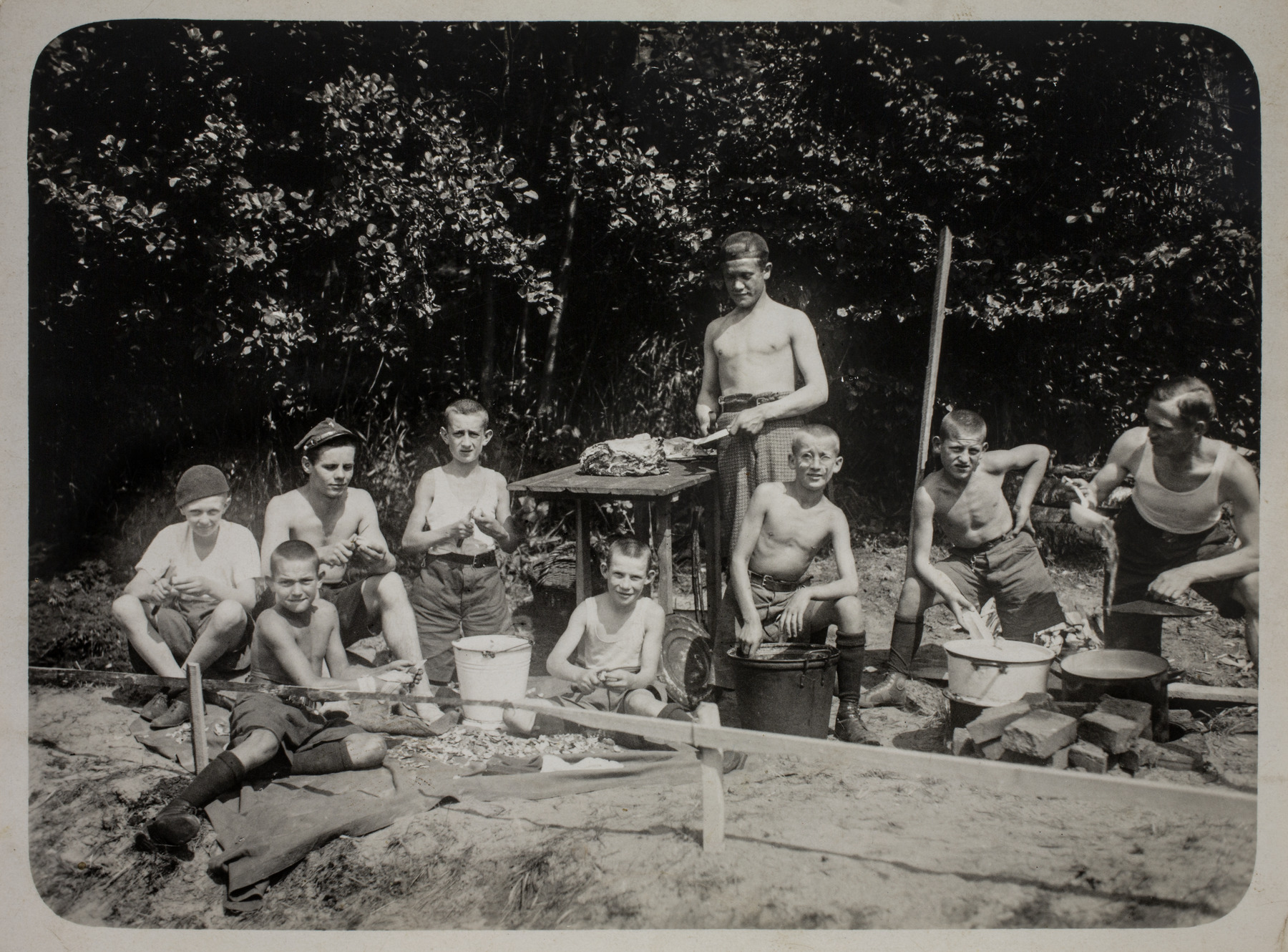 Harcerze w czasie posiłku na obozie w Wysowej, lato 1935 r. Zbiór por. Romana Zygmunta Skwary -
