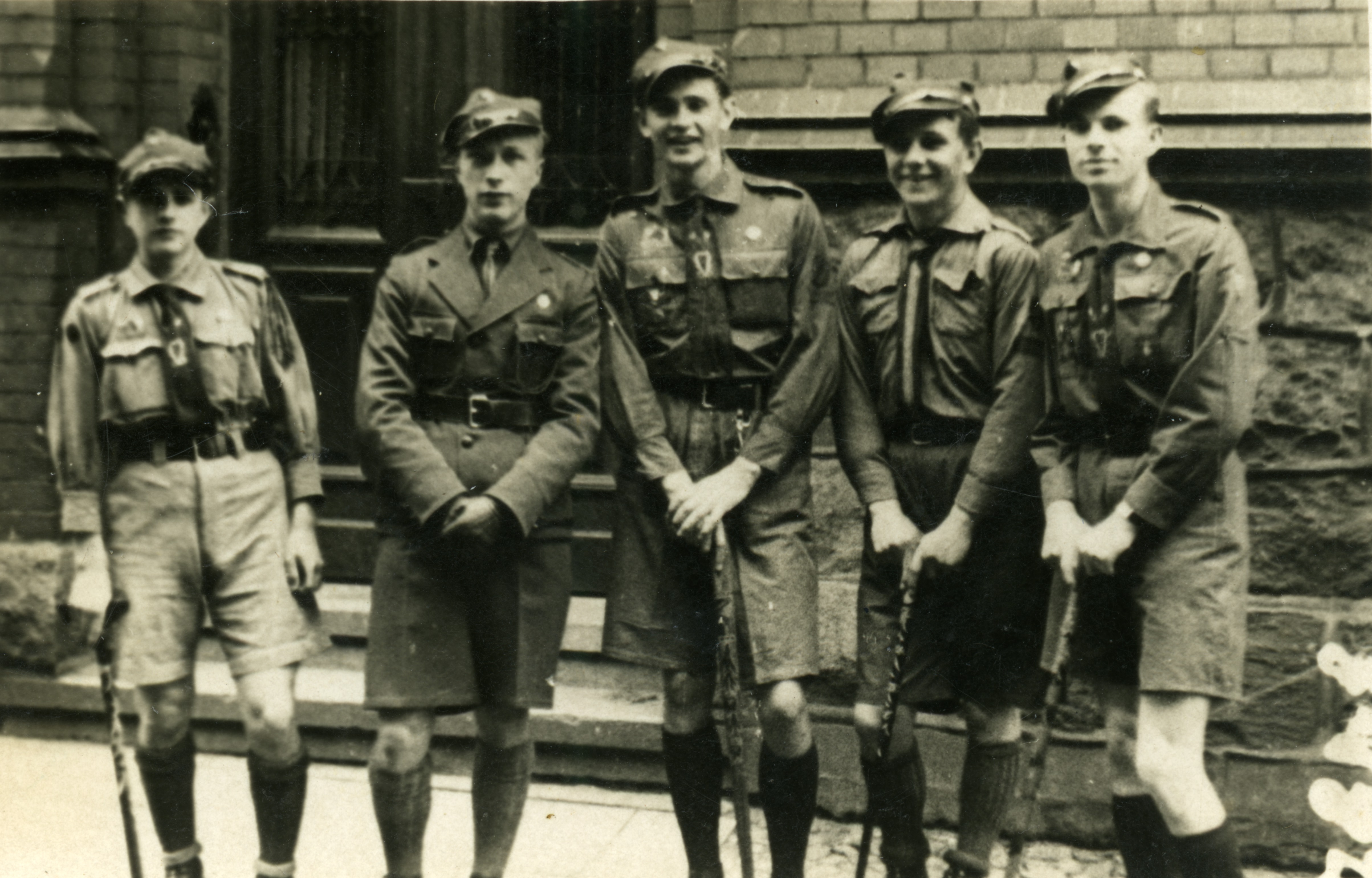 Wojciech Sabat (pierwszy z prawej) na obozie harcerskim ze swoimi podopiecznymi, lata 30. XX w. Zbiór Józefa Martyńskiego -