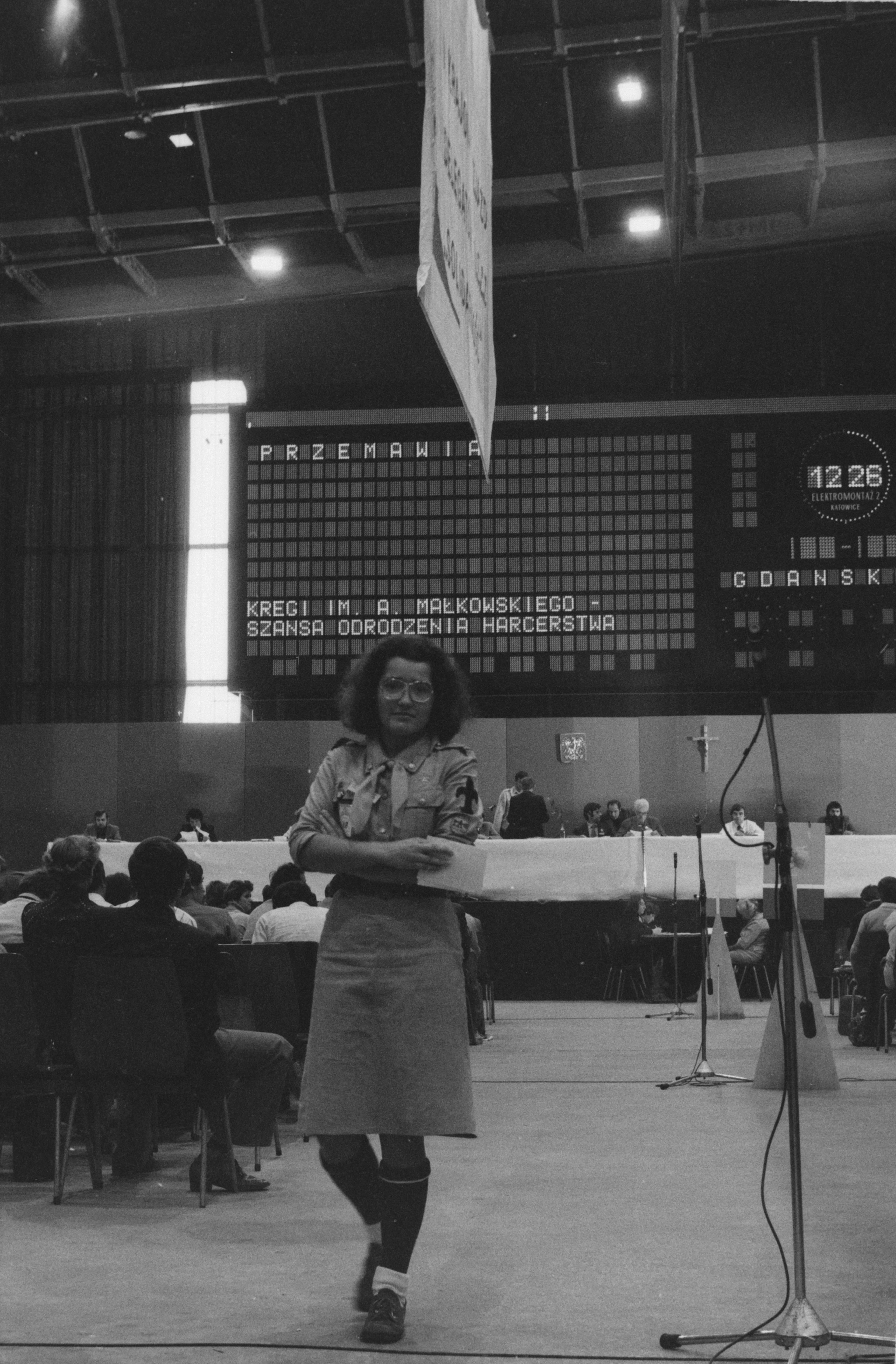 I Krajowy Zjazd Delegatów NSZZ "Solidarność" w Hali Olivia w Gdańsku. Harcerka z Kręgów im. A. Małkowskiego. Gdańsk, 1981/09/05-1981/10/07 Zbiór Tadeusza Kensego -