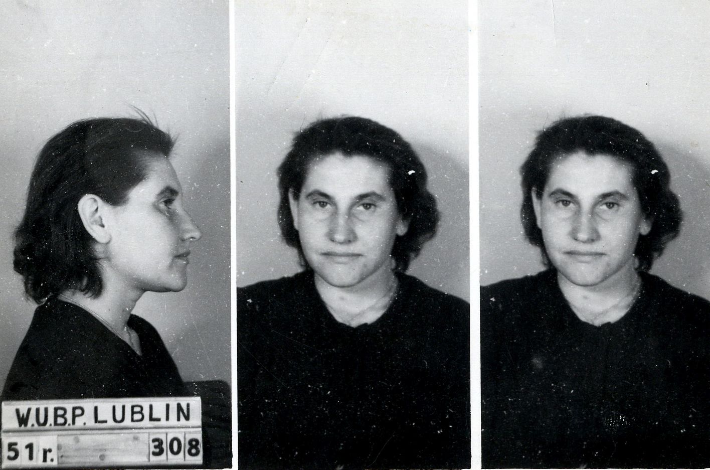 Regina Ozga „Lilka”, łączniczka oddziału „Żelaznego”, zdjęcie sygnalityczne wykonane przez UB, Lublin 1951 r. (Fot. AIPN) -