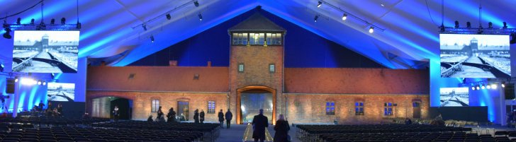 Brama byłego KL Auschwitz II - Birkenau w dniu obchodów 70. rocznicy wyzwolenia KL Auschwitz (fot. M. Foks)