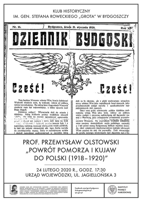 Prelekcja prof. Przemysława Olstowskiego „Powrót Pomorza i Kujaw do Polski (1918–1920)” – Bydgoszcz, 24 lutego 2020.
