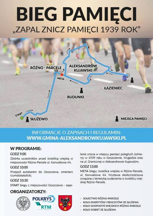 Zapraszamy także do udziału w „Koleżeńskim Biegu Pamięci w Aleksandrowie Kujawskim” współorganizowanym przez Wójta Gminy Aleksandrów Kujawski Andrzeja Olszewskiego oraz firmę Polkrys wraz z Delegaturą IPN w Bydgoszczy.