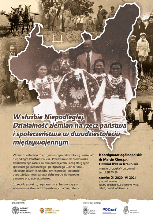 W ramach projektu edukacyjnego „W służbie Niepodległej. Działalność ziemian na rzecz państwa i społeczeństwa w dwudziestoleciu międzywojennym” zapraszamy zainteresowanych nauczycieli do udziału w dniu 8 grudnia 2020 r. godz. 16.00-18.30, w szkoleniu on-line poświęconym aktywności społecznej ziemiaństwa w pierwszej połowie XX wieku.