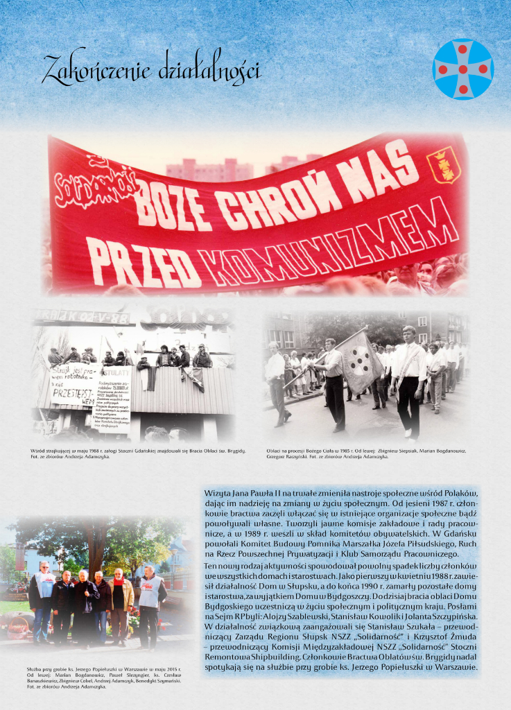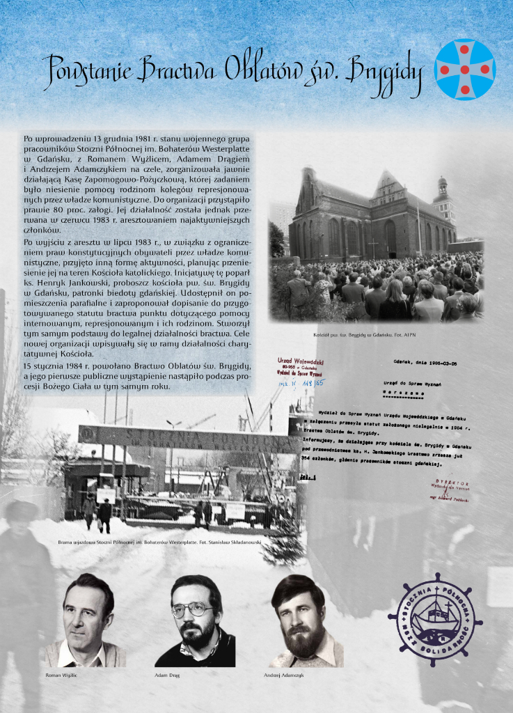 Po wyjściu z aresztu w lipcu 1983 r., w związku z ograniczeniem praw konstytucyjnych obywateli przez władze komunistyczne, przyjęto inną formę aktywności, planując przeniesienie jej na teren Kościoła katolickiego. Inicjatywę tę poparł ks. Henryk Jankowski, proboszcz kościoła pw. św. Brygidy w Gdańsku. Udostępnił on pomieszczenia parafialne i zaproponował dopisanie do przygotowywanego statutu bractwa punktu dotyczącego pomocy internowanym, represjonowanym i ich rodzinom. Stworzył tym samym podstawy do legalnej działalności bractwa. Cele nowej organizacji wpisywały się w ramy działalności charytatywnej Kościoła.
