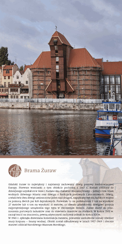 Ukazano również zabytki absolutnie unikatowe na światową skalę – takie jak Wielki Młyn, bazylika Mariacka czy Brama Żuraw. Przywołano dziś już nieistniejące gmachy hoteli Danziger Hof i Continental oraz niedawno odrestaurowanego dworca kolejowego – chociaż wzniesione w niemieckiej rzeczywistości końca XIX w., w Wolnym Mieście Gdańsku stały się centrum aktywności Polaków walczących o utrzymanie swojej tożsamości i kultury.
