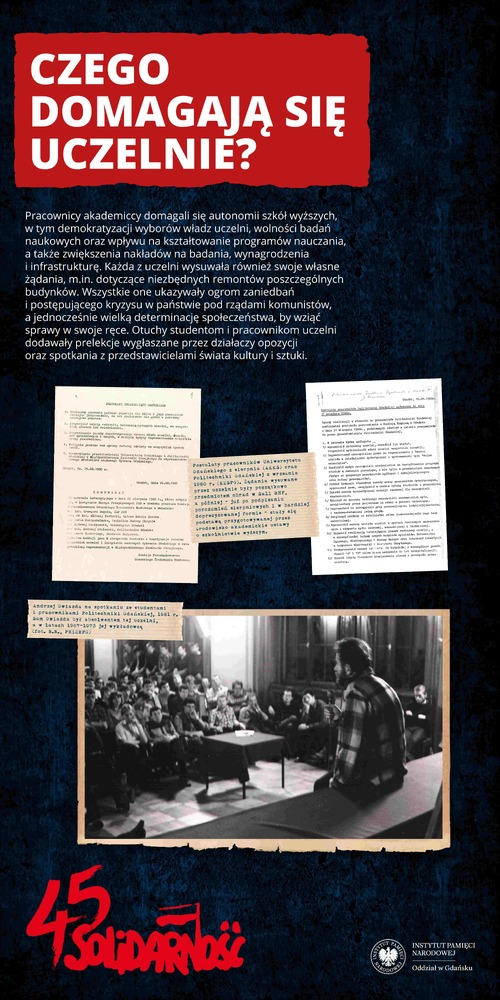 Cytat z powieści Henryka Sienkiewicza dobrze oddawał narastające zagrożenie zbrojną interwencją władz komunistycznych wobec „Solidarności”. Pokazywał też wyższość moralną środowiska uczelnianego nad ich brutalną siłą. (wstęp do wystawy)