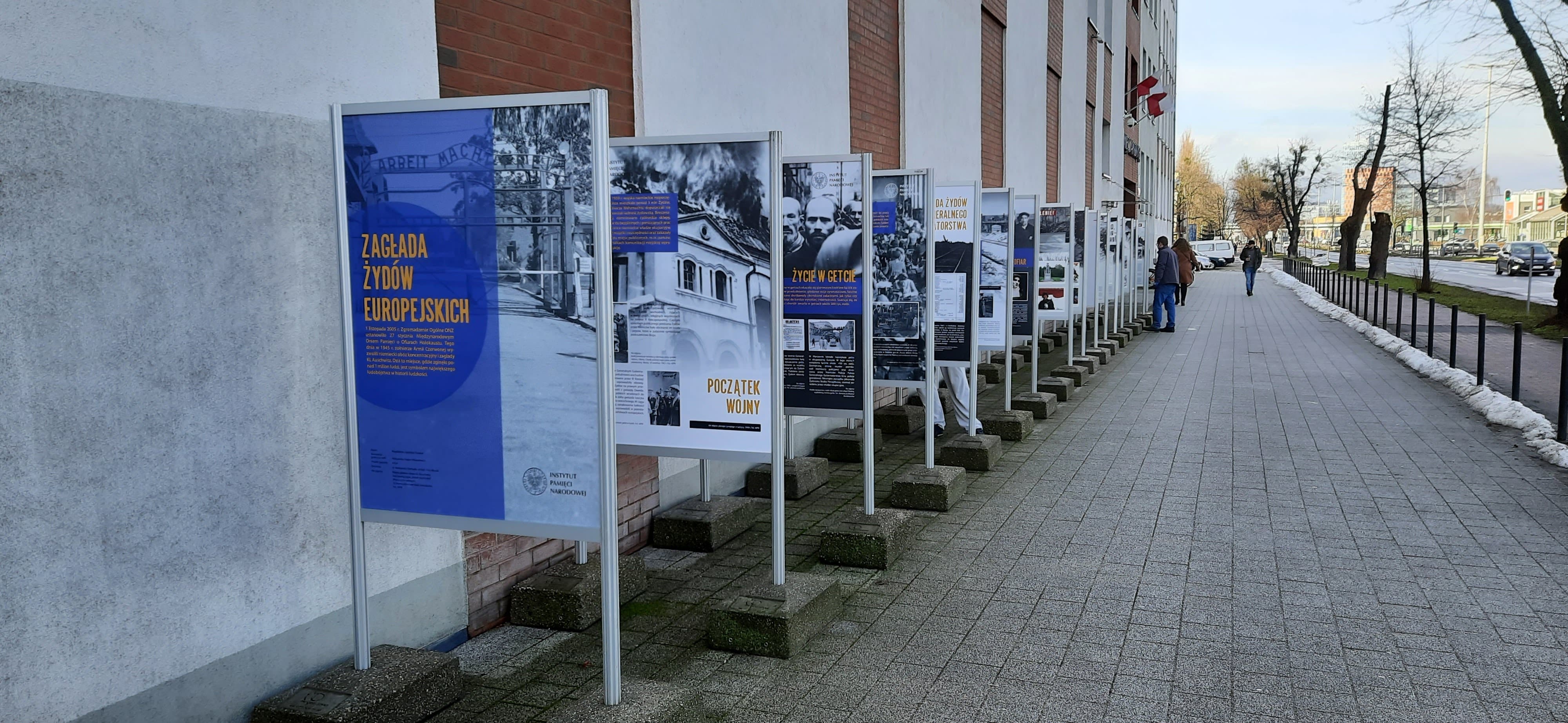 Ekspozycja przygotowana przez OBEN IPN Oddział w Łodzi opisuje m.in. politykę nazistowskich Niemiec wobec Żydów przed II wojną światową, los Żydów w okupowanej Europie, warunki panujące w gettach, działalność Einsatzgruppen we Wschodniej Europie, zagładę Żydów z Generalnego Gubernatorstwa oraz formy buntu i oporu.