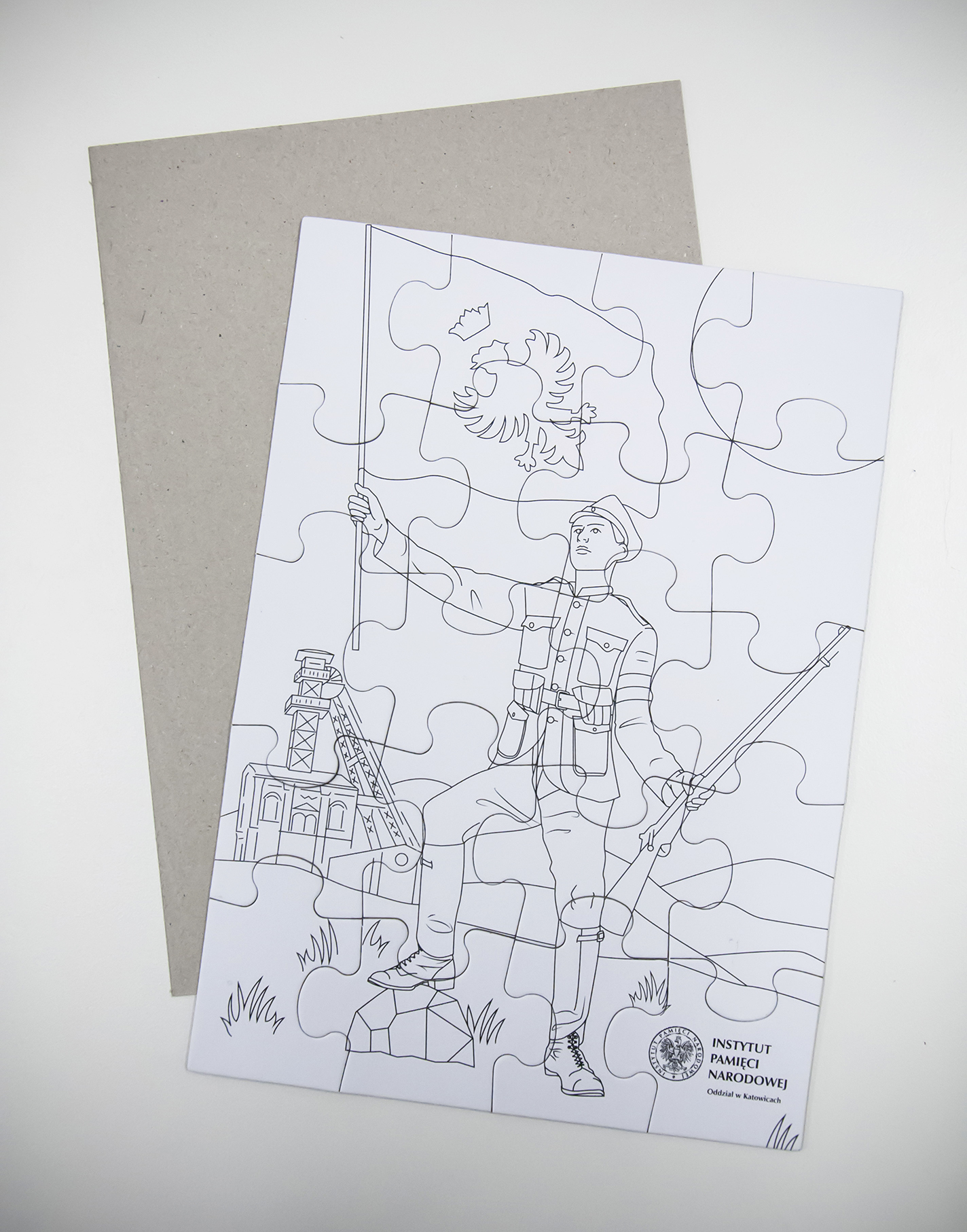 Puzzle przygotowane przez Oddziałowe Biuro Edukacji Narodowej IPN w Katowicach, wydane przez Oddział Instytut Pamięci Narodowej w Katowicach w ramach obchodów stulecia powstań śląskich. Rysunki wykonał Bartłomiej Dudek.