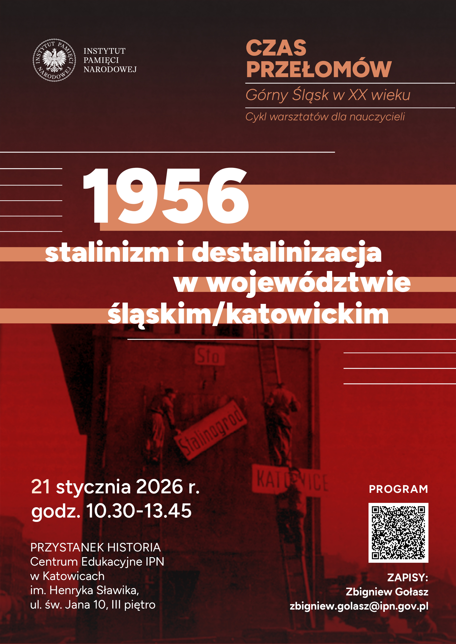 Cykl warsztatów dla nauczycieli „Czas przełomów – Górny Śląsk w XX wieku" – „1956. Stalinizm i destalinizacja w województwie śląskim/katowickim" – Katowice, 21 stycznia 2026