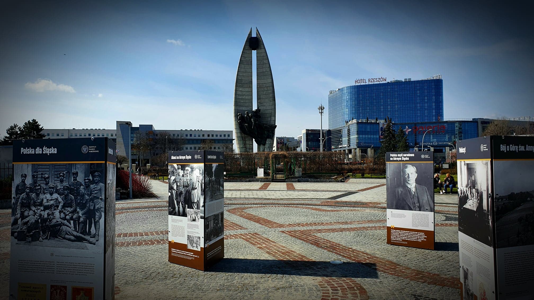 Wystawa „Powstania śląskie 1919–1921” została przygotowana przez Oddziałowe Biuro Edukacji Narodowej IPN w Katowicach w ramach projektu wystaw elementarnych Instytutu Pamięci Narodowej i przystosowana do ekspozycji plenerowej. Składa się z 15 paneli, prezentujących w układzie chronologicznym najważniejsze wydarzenia z lat 1918–1922, czyli okresu, w którym ważyły się losy regionu. Koniec I wojny światowej, pierwsze i drugie powstanie śląskie, plebiscyt górnośląski oraz poprzedzająca go kampania propagandowa, trzecie powstanie śląskie, a w końcu podział regionu i przejęcie przyznanej części Górnego Śląska przez administrację polską – to najważniej aspekty tej opowieści.