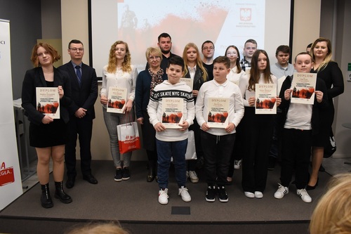 Zanim odbyło się wręczenie dyplomów i nagród, Łukasz Pastuszyński z Oddziału Okręgowego Narodowego Banku Polskiego w Kielcach, który był partnerem konkursu, zaprezentował monetę kolekcjonerską z serii „Wyklęci przez komunistów żołnierze niezłomni” – Józef Kuraś „Ogień”. Srebrne monety o nominale 10 zł trafiły również do puli nagród dla laureatów.