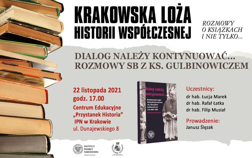 W dyskusji wokół książki #IPN o rozmowach SB z bp. Henrykiem Gulbinowiczem, udział wzięli: dr hab. Rafał Łatka (Biuro Badań Historycznych, koordynator Centralnego Projektu Badawczego IPN „Władze komunistyczne wobec Kościołów i związków wyznaniowych w Polsce 1944-1989”) i dr hab. Filip Musiał (dyrektor Oddziału IPN w Krakowie, ekspert w badaniach nad historią aparatu represji PRL), a także dr hab. Łucja Marek z Oddziałowego Biura Badań Historycznych IPN w Krakowie.