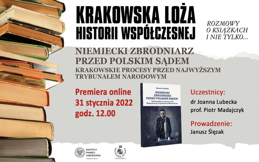 „Niemiecki zbrodniarz przed polskim sądem. Krakowskie procesy przed Najwyższym Trybunałem Narodowym” – taki tytuł nosi książka, która dostarczyła tematów do rozmowy podczas spotkania Krakowskiej Loży Historii Współczesnej online.