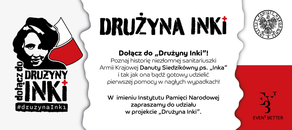 Zapraszamy uczniów klas 6-8 szkół podstawowych oraz wszystkich klas szkół ponadpodstawowych do udziału w bezpłatnych 45-minutowych zajęciach #drużyna Inki, złożonych z dwóch części: w pierwszej uczestnicy poznają życie Danuty Siedzikówny oraz jej rodziny, w drugiej prowadzone jest teoretyczne i praktyczne szkolenie z pierwszej pomocy przedmedycznej.