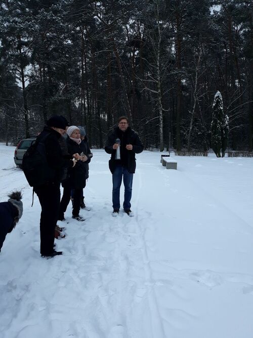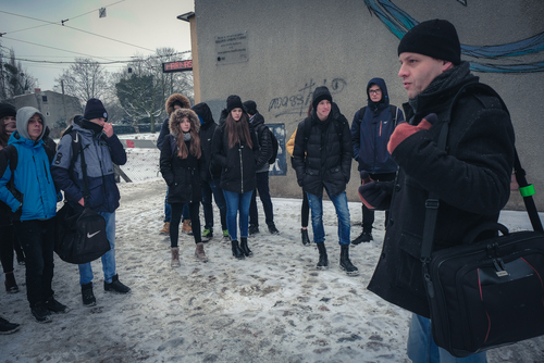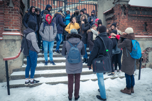 25 stycznia odbyły się zajęcia w terenie: Artur Ossowski i Paweł Kowalski poprowadzili ich uczestników szlakiem najważniejszych miejsc związanych z historią Litzmannstadt Getto, korzystając z wycieczki „Śladami łódzkiego getta” opracowanej przez pracowników pionu edukacyjnego łódzkiego IPN na aplikację Audiotrip.