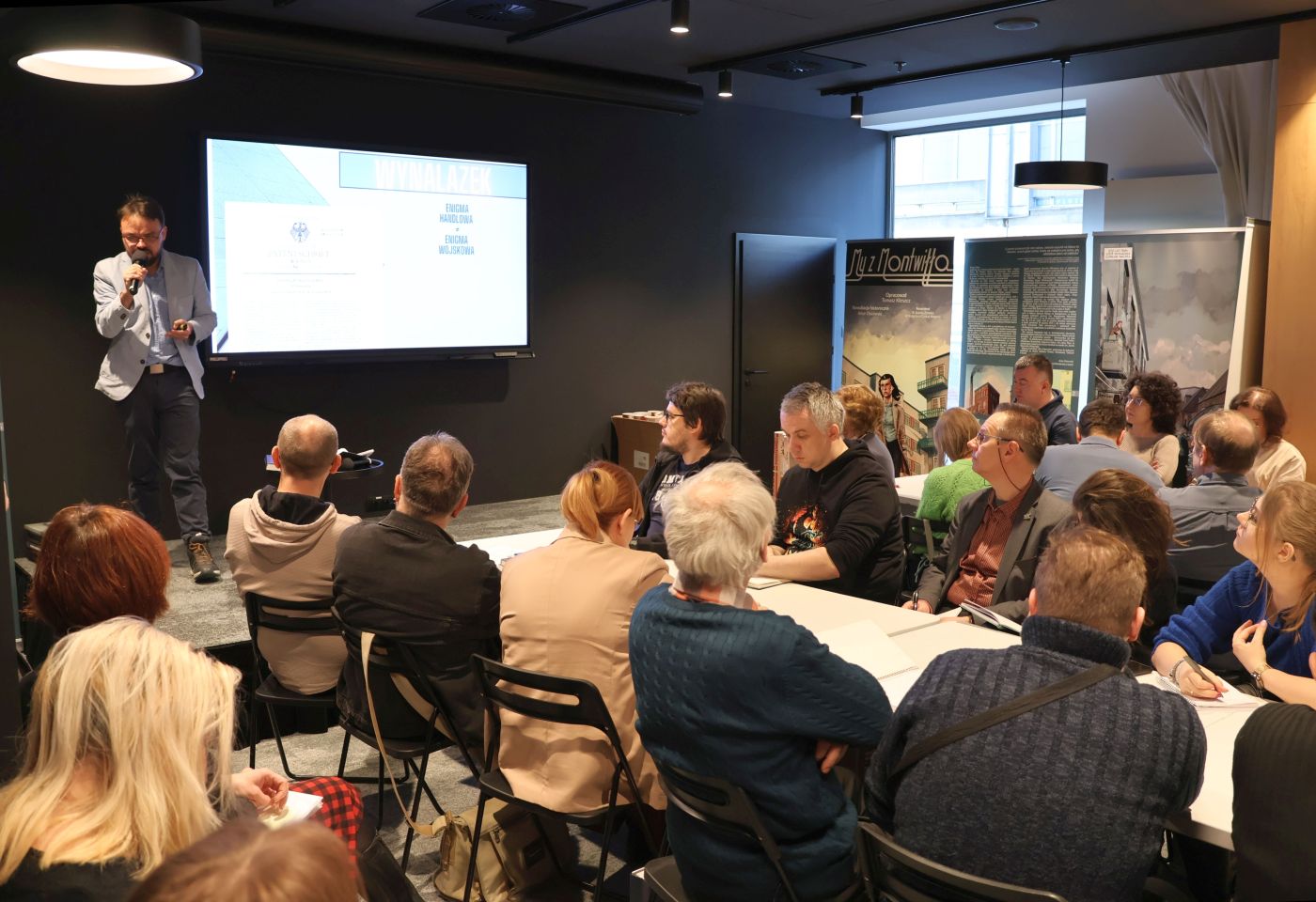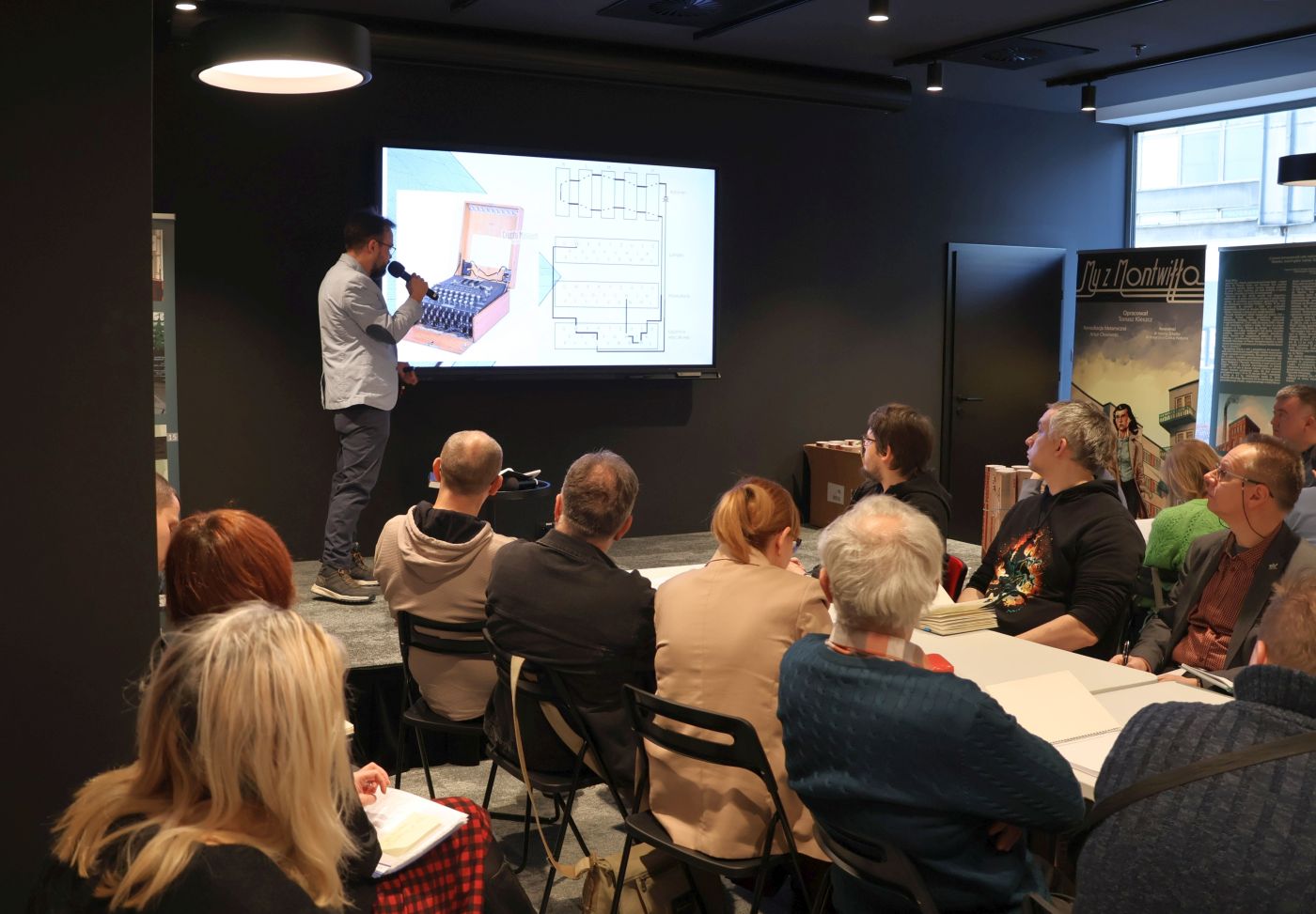 17 lutego 2025 r. w Przystanku Historia IPN im. ppłk. Wacława Lipińskiego w Łodzi odbyło się szkolenie dla nauczycieli historii „Informacja i dezinformacja wczoraj i dziś”. Dr Sebastian Adamkiewicz (MTN) przybliżył wpływ środowiska społecznego Jana Kowalewskiego na jego zdolność rozszyfrowania depesz bolszewickich w czasie wojny 1920 r., Witold Sobócki (IPN Poznań) przeprowadził warsztaty na temat zasad działania maszyny szyfrującej Enigma oraz okoliczności złamania jej kodu przez polskich kryptologów. Dr Bartłomiej Kluska (EC1) przedstawił społeczną historię internetu w Polsce, a Andrzej Pinkowski (SAN w Łodzi) zaprezentował sposoby wykorzystania AI na lekcjach historii.
