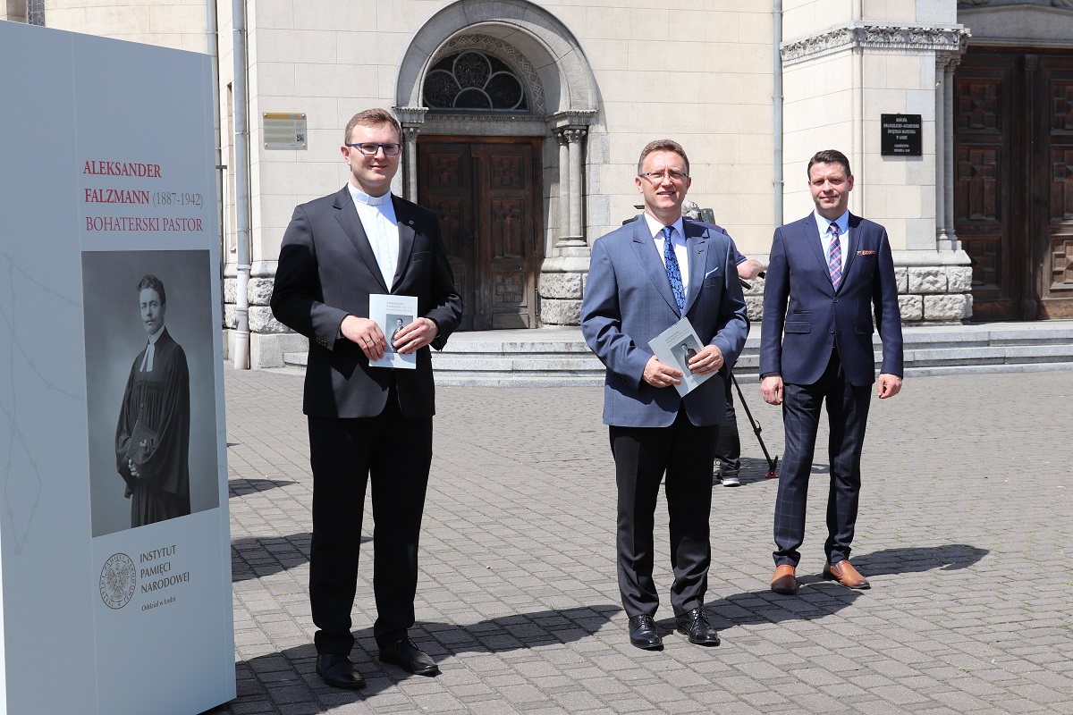 Ekspozycja, składająca się z 10 plansz, zamontowanych na 5 modułach wystawienniczych, poświęcona jest pamięci ewangelickiego duchownego, który przez blisko 20 lat Międzywojnia żył w Zgierzu, zapewniając mieszkańcom tego miasta nie tylko posługę kapłańską, ale również aktywnie działając na rzecz lokalnej społeczności: organizując m.in. naukę dla młodzieży, koła zainteresowań dla parafian, chór, dom starców i dom dla sierot. Za swoje dokonania został odznaczony Złotym Krzyżem Zasługi. Falzmann, mimo niemieckich korzeni, stał na stanowisku, że Kościół Ewangelicko-Augsburski w Polsce nie powinien być podporządkowany władzom w Berlinie, lecz zachować narodowy charakter. We wrześniu 1939 roku został aresztowany przez Niemców, a następnie poddany brutalnemu śledztwu w siedzibie łódzkiego Gestapo. Mimo to odmówił współpracy z okupantem. Pastora wywieziono do obozu koncentracyjnego w Dachau, gdzie zmarł za wierność wybranej przez siebie ojczyźnie.