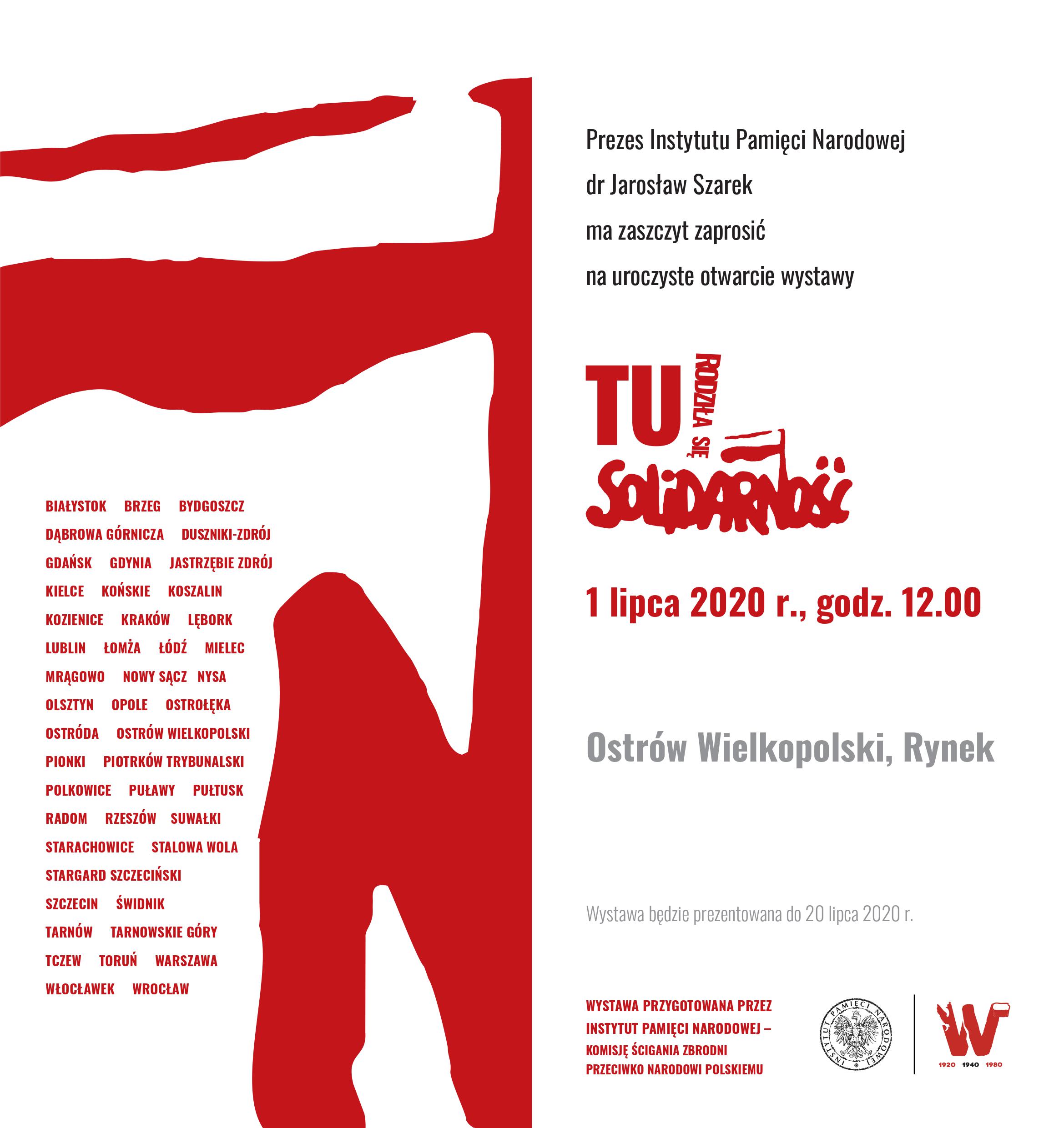 W związku z obchodami 40. rocznicy narodzin ruchu społecznego „Solidarność”, 1 lipca na Rynku w Ostrowie Wielkopolskim o godz. 12.00, odbyło się uroczyste otwarcie wystawy „TU rodziła się »Solidarność«”.