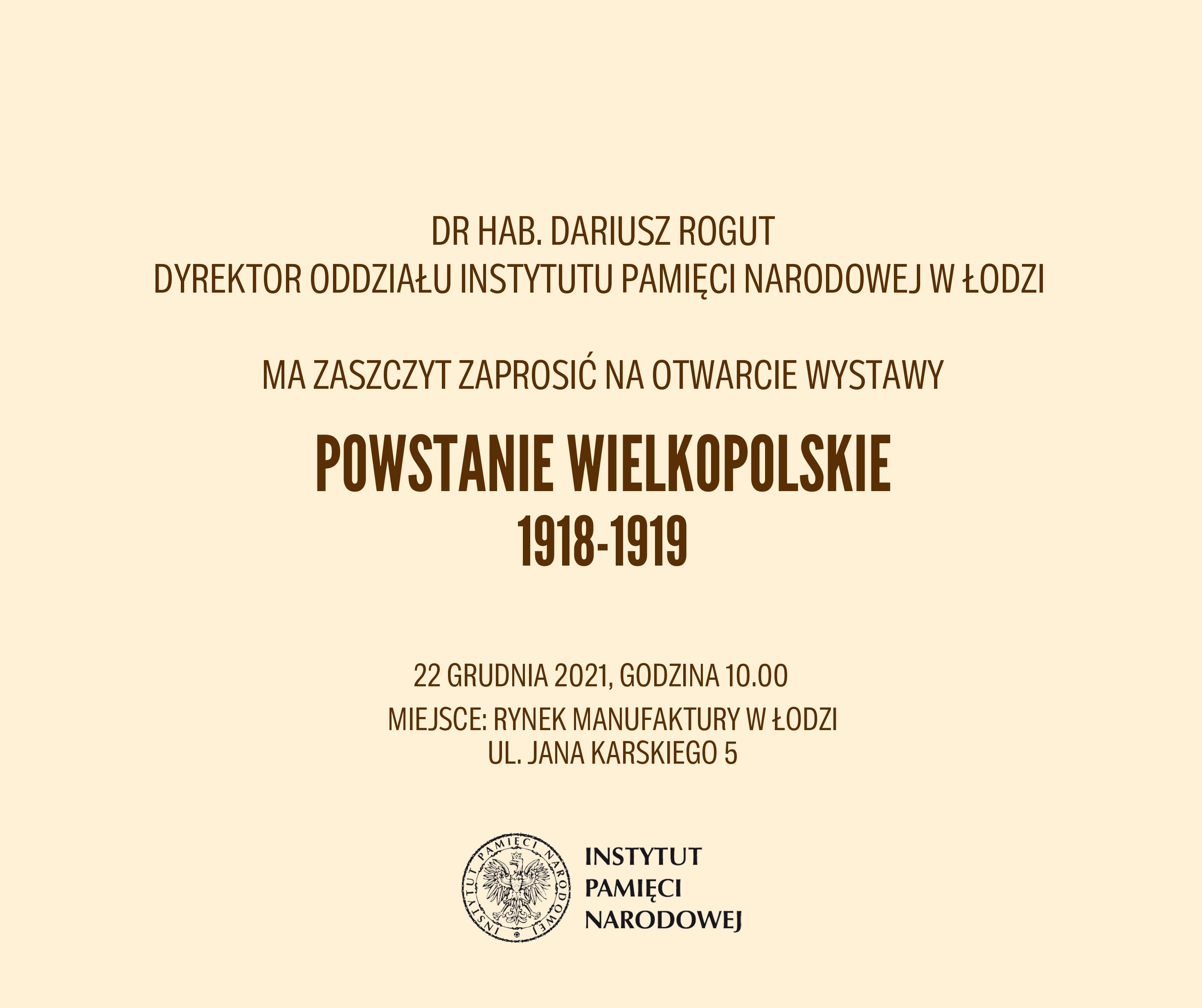 27 grudnia 2021 r., w 103. rocznicę wybuchu Powstania Wielkopolskiego 1918-1919, będziemy po raz pierwszy obchodzić Narodowy Dzień Zwycięskiego Powstania Wielkopolskiego. W celu uczczenia nowego święta i oddania hołdu uczestnikom bohaterskiego zrywu, Instytut Pamięci Narodowej wraz z wojewodami zaplanowali prezentację w całej Polsce wystawy „Powstanie Wielkopolskie 1918–1919”.
