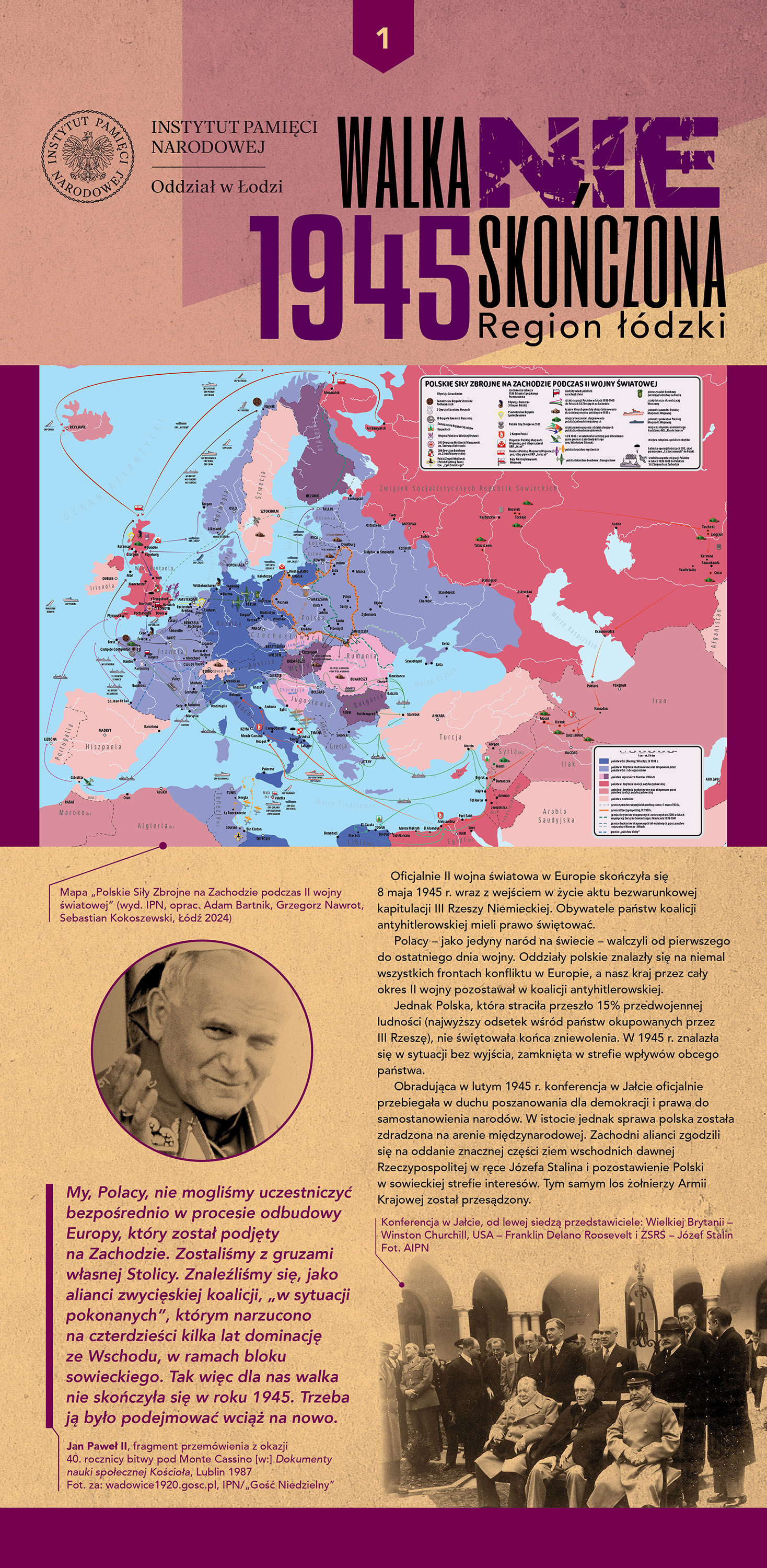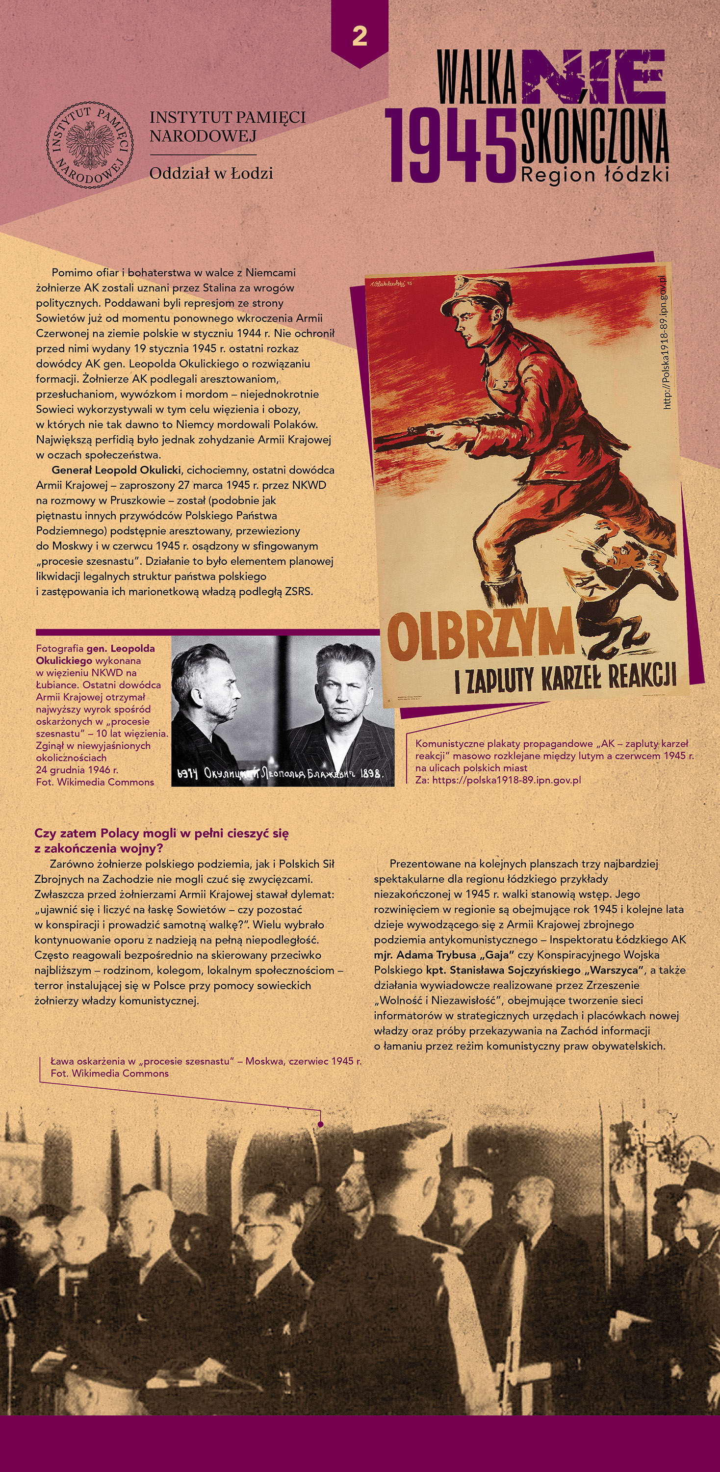 Oddziałowe Biuro Edukacji Narodowej IPN w Łodzi zaprasza do zapoznawania się z wystawą przygotowaną w ramach działań realizowanych w 80. rocznicę zakończenia II wojny światowej.