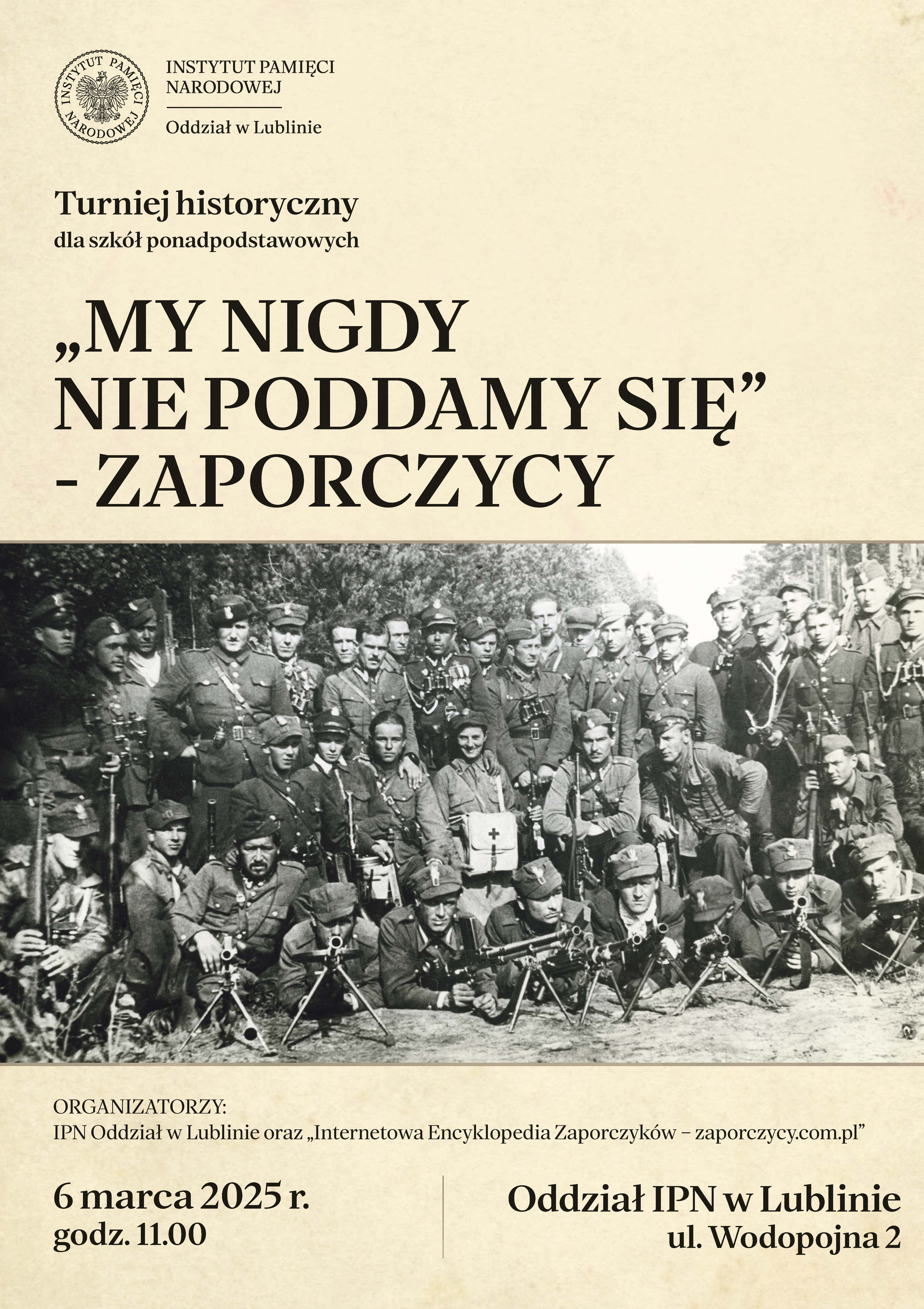 Turniej odbędzie się 6 marca 2025 r. o godz. 11.00 w siedzibie Oddziału IPN w Lublinie, ul. Wodopojna 2.