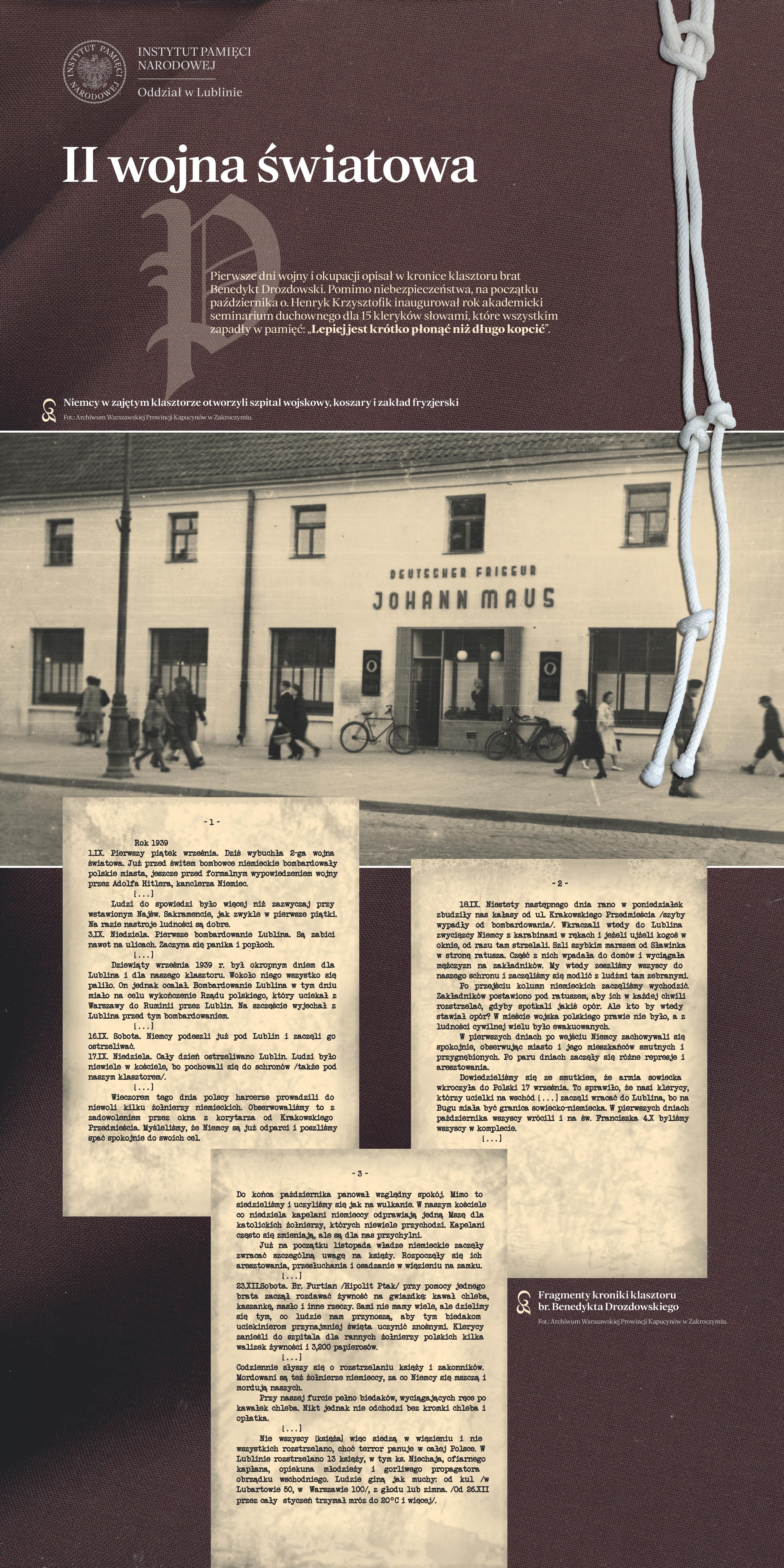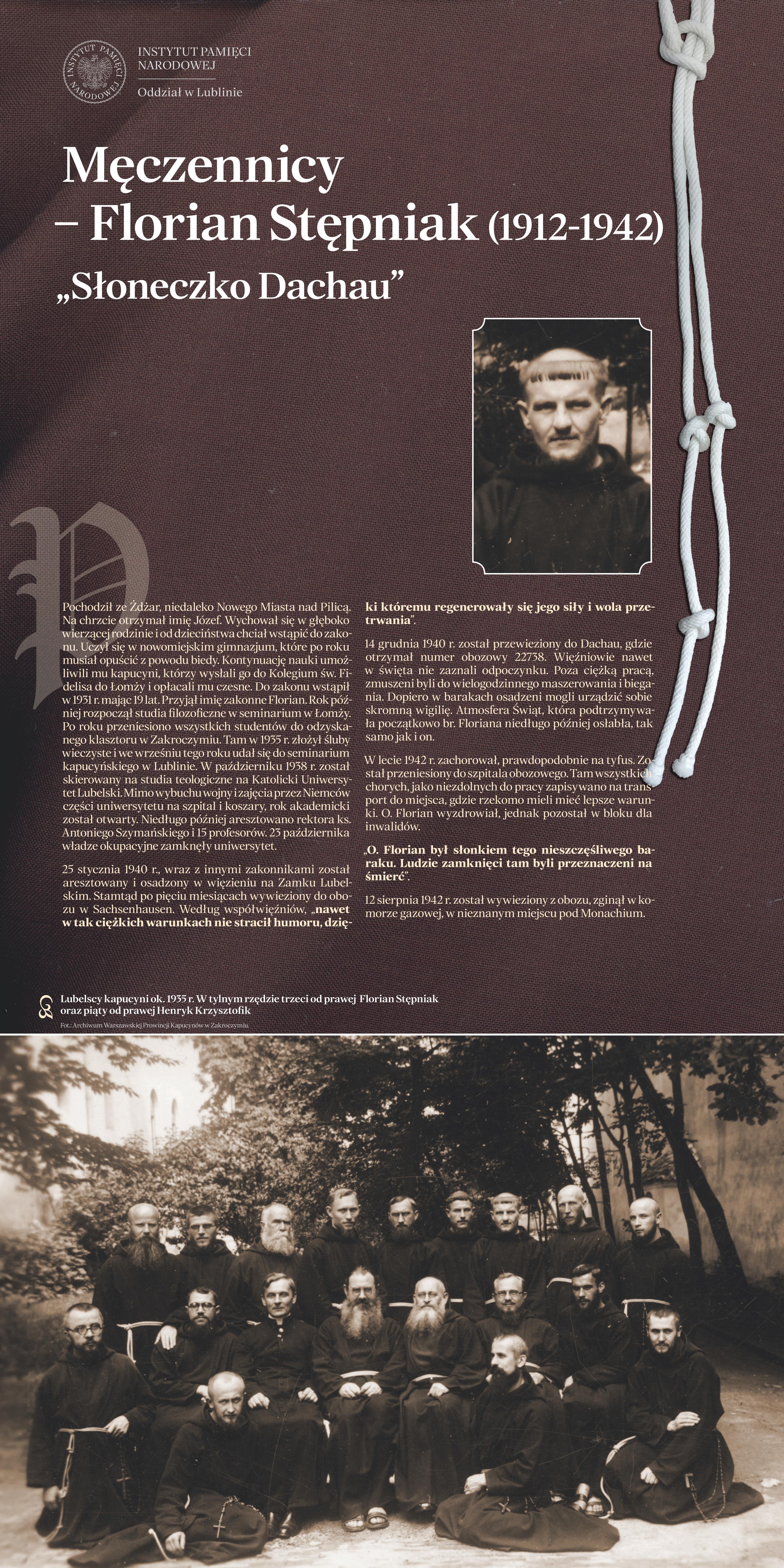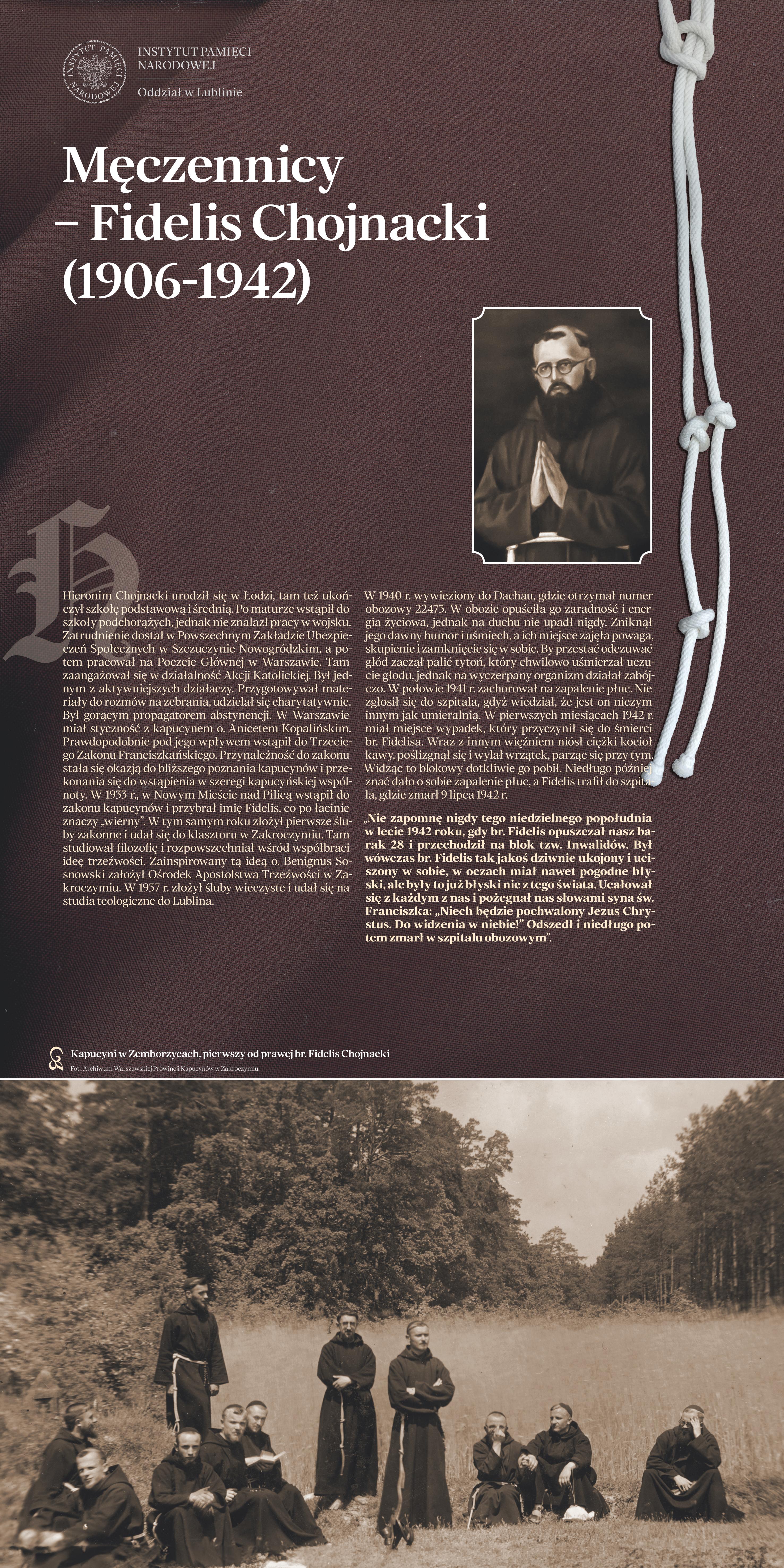 Zdjęcia i materiały ze zbiorów: Archiwum Warszawskiej Prowincji Kapucynów w Zakroczyniu, Cyfrowa Biblioteka Narodowa Polona, Archiwum Instytutu Pamięci Narodowej, Wojewódzka Biblioteka Publiczna im. Hieronima Łopacińskiego w Lublinie, zbiory specjalne.