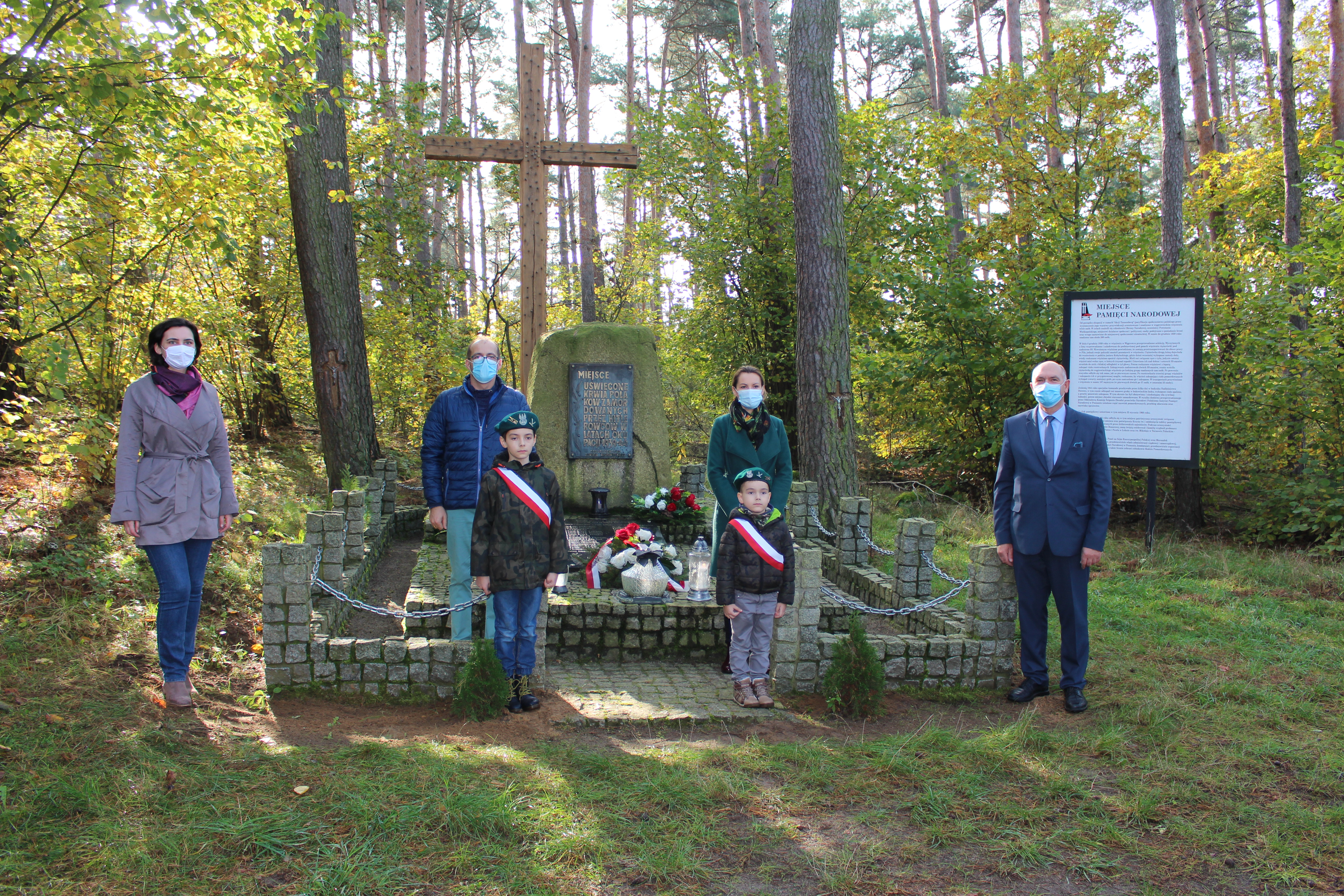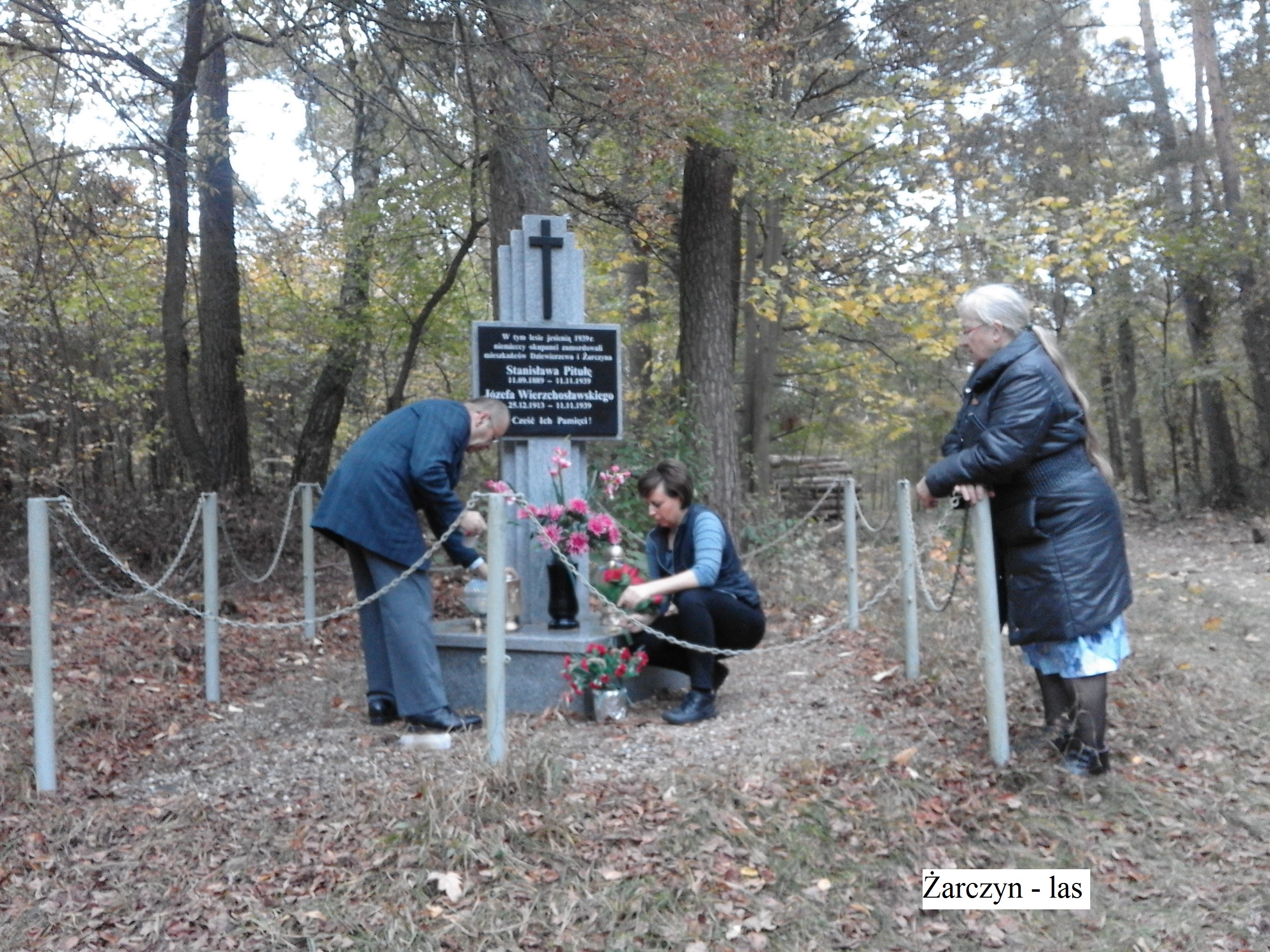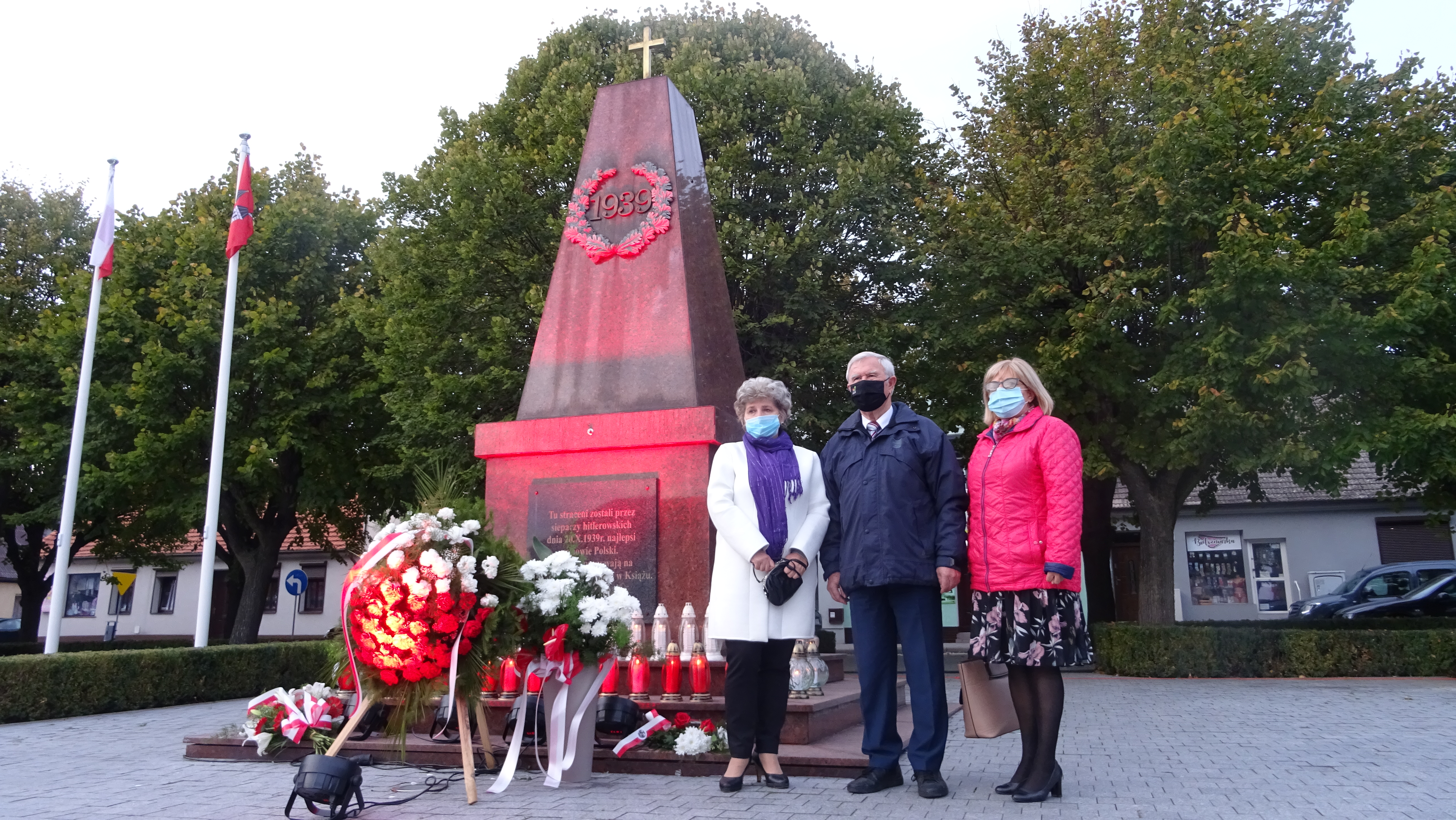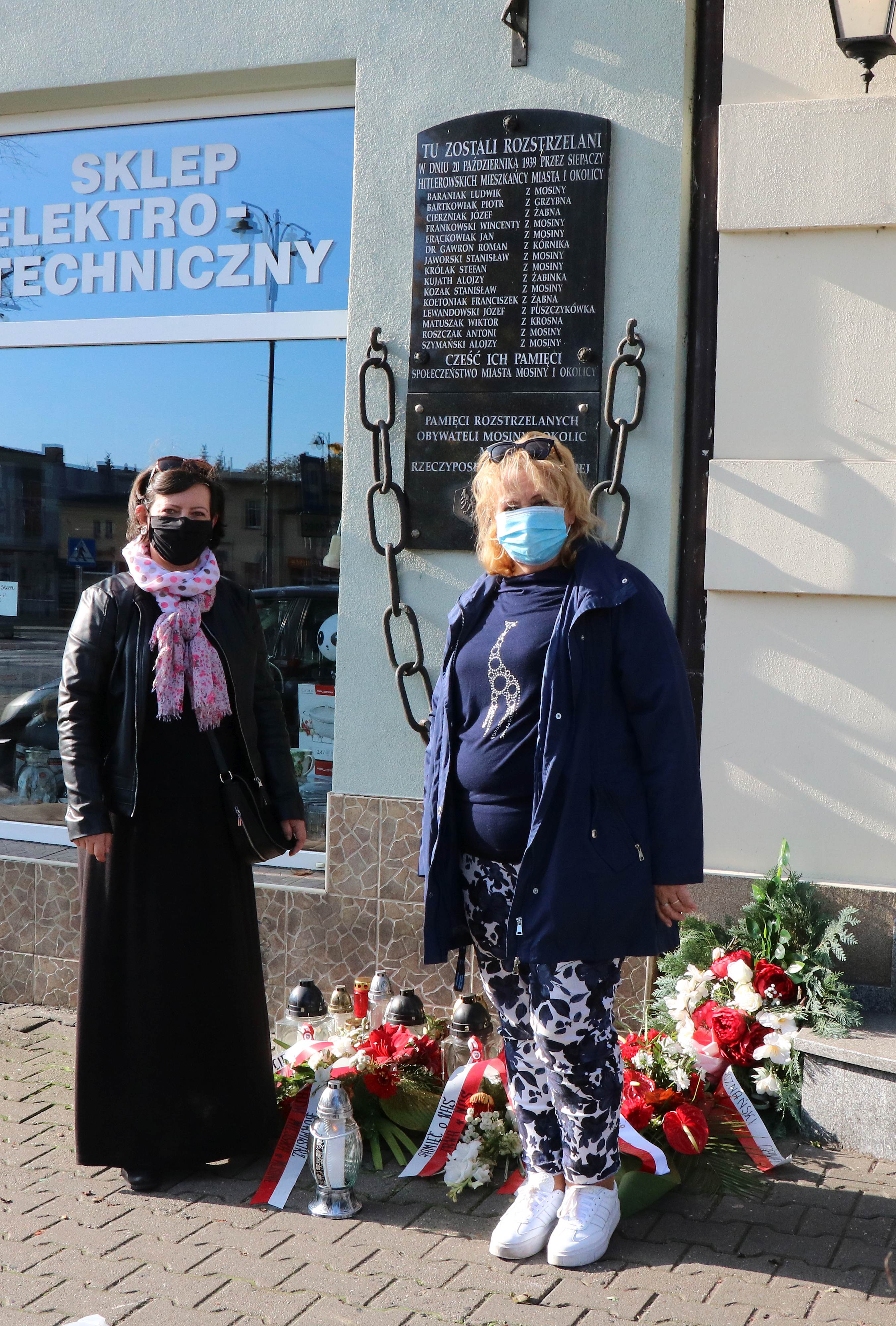 Tablica pamiątkowa w miejscu rozstrzelania 20 X 1939r, 15 obywateli Mosiny i okolic, dyrektor Galerii Sztuki Dorota Strzelecka, Agnieszka Bereta -