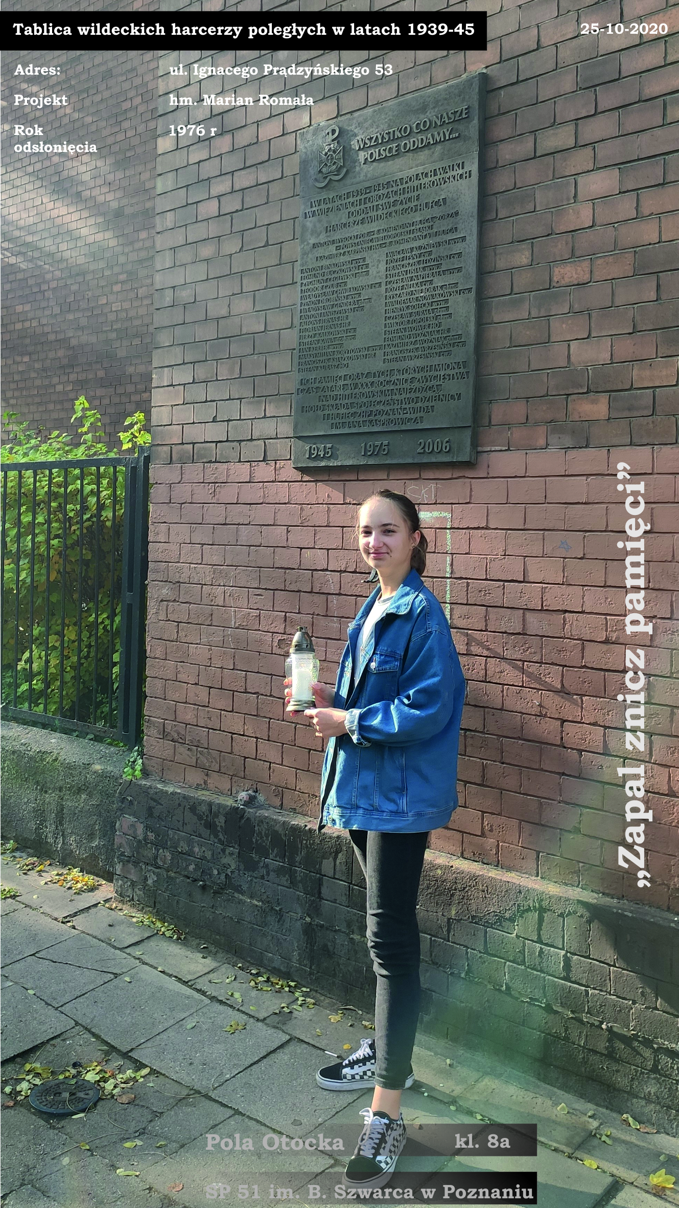 Pomnik pamięci harcerek i harcerzy wielkopolskich, Park Maltański Poznań, Bartosz Karasiński Szkoła Podstawowa nr 51 im. Bronisława Szwarca w Poznaniu -