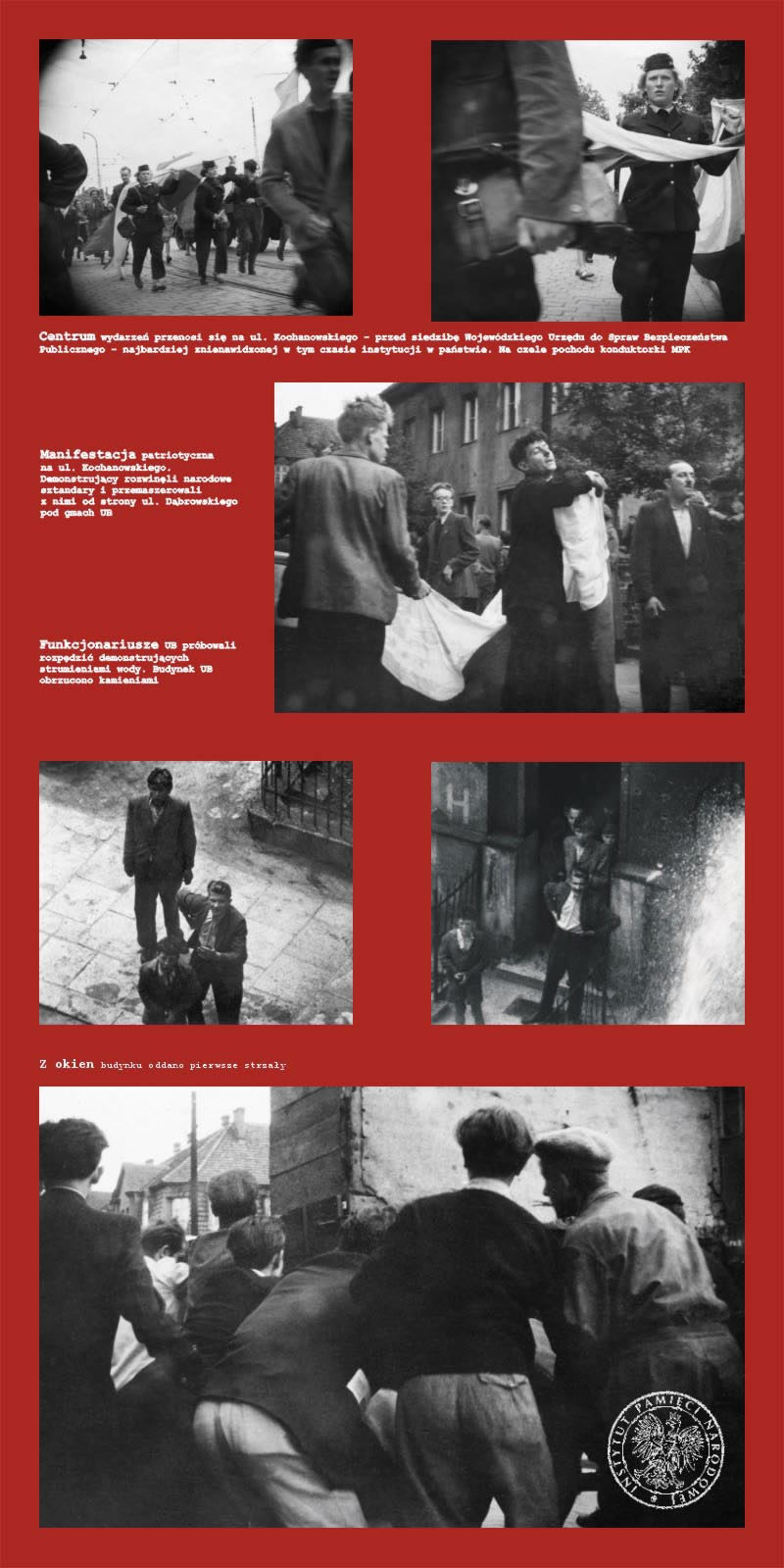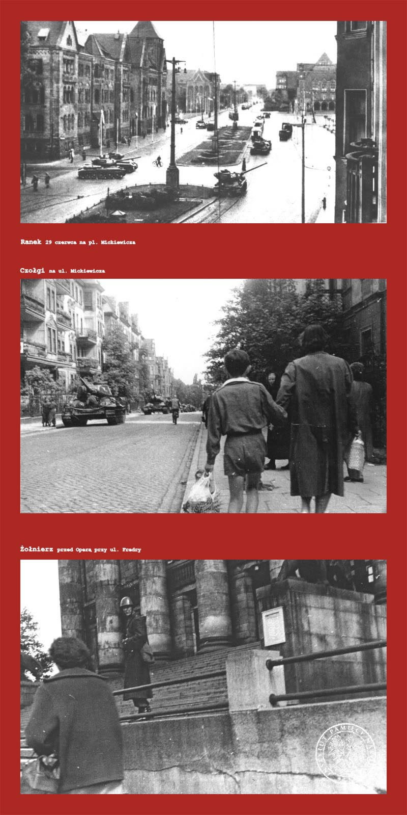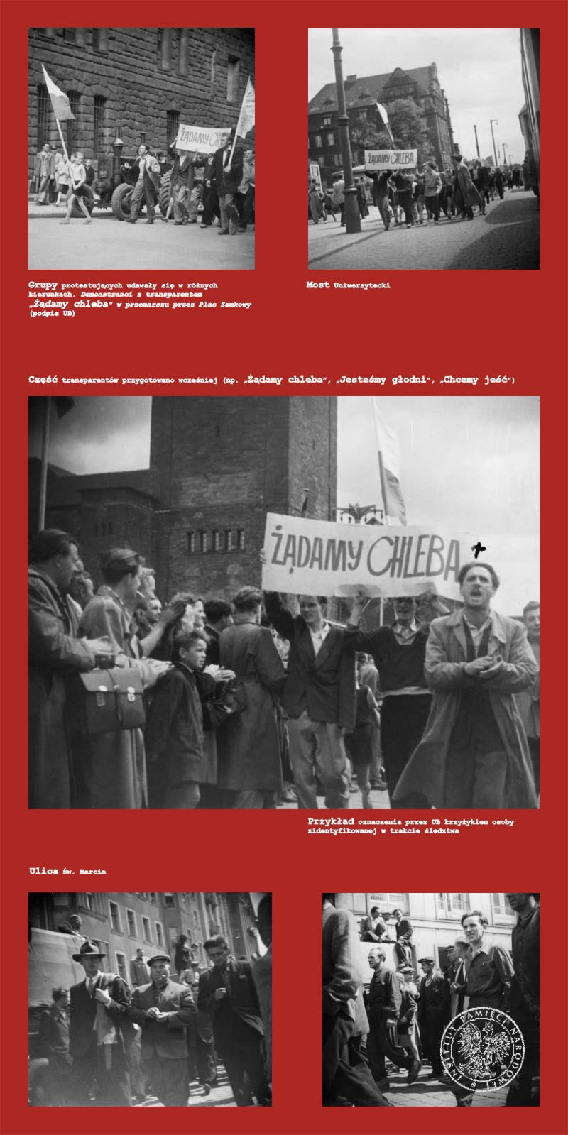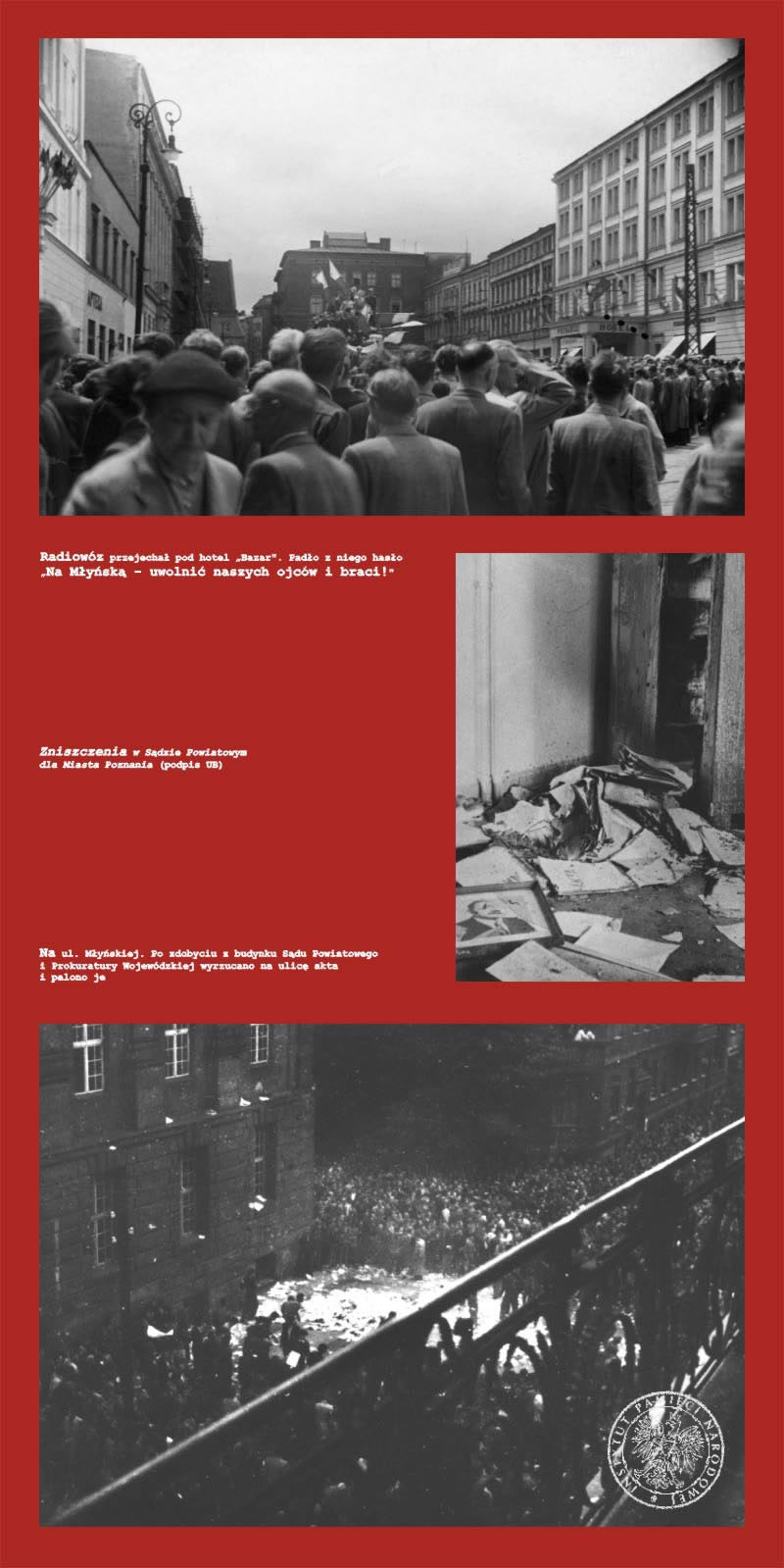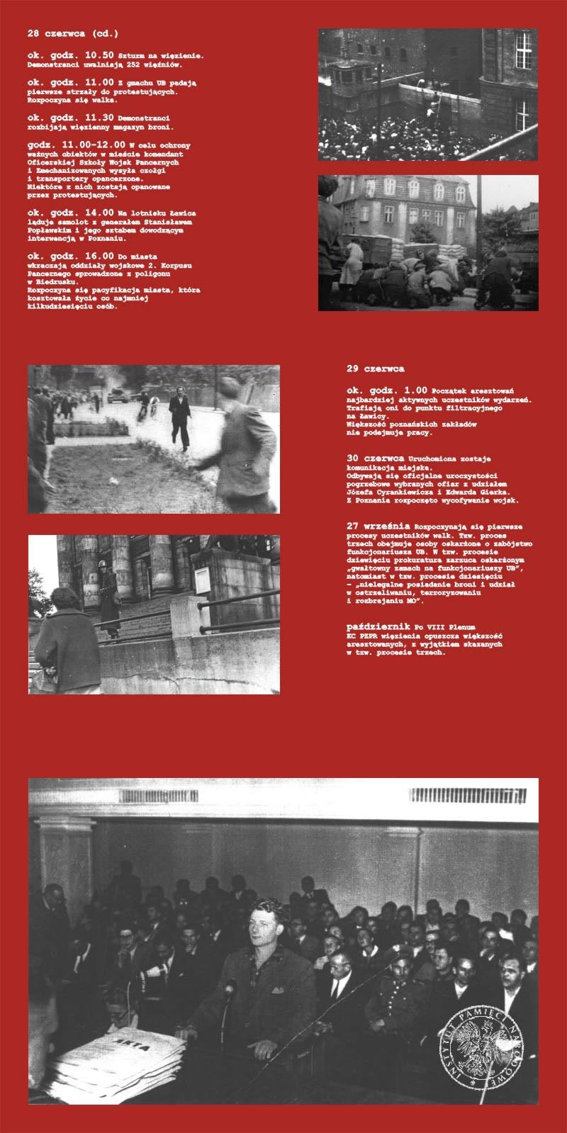 Tworzące wystawę plansze przedstawiają uporządkowane chronologicznie wydarzenia z dnia 28 czerwca 1956 roku, pacyfikację miasta, osoby zatrzymane w związku z Poznańskim Czerwcem, a także śledztwo i procesy. Fotografie pochodzą głównie ze zbiorów IPN, są jednak na wystawie zdjęcia unikatowe, dotychczas niepublikowane, a uzyskane z prywatnych zbiorów. Komentarz merytoryczny autorzy wystawy ograniczyli do minimum.