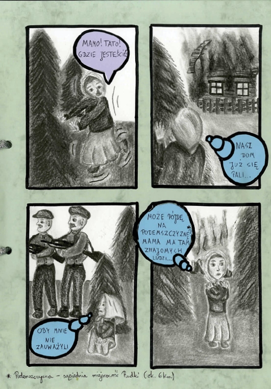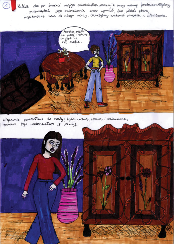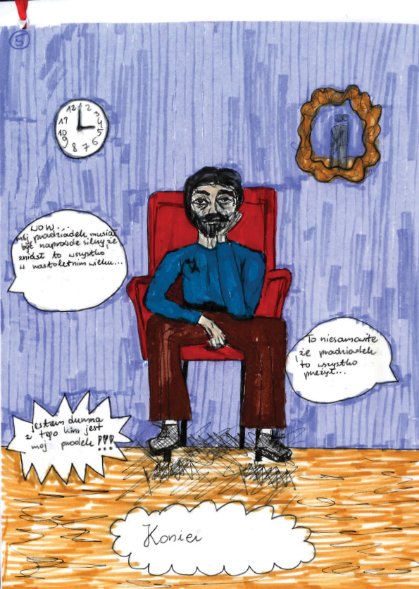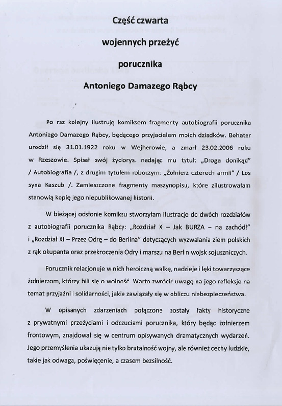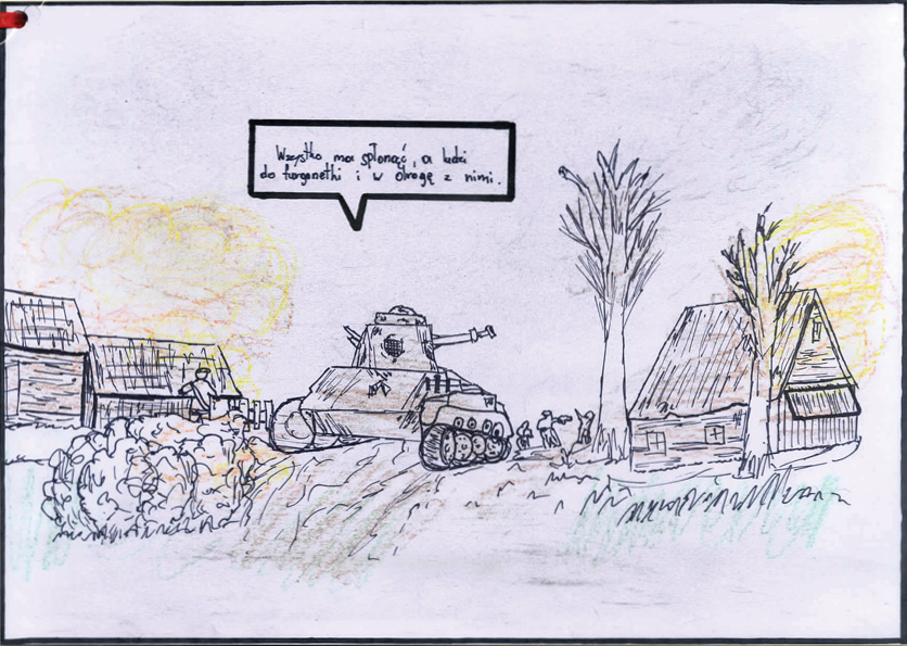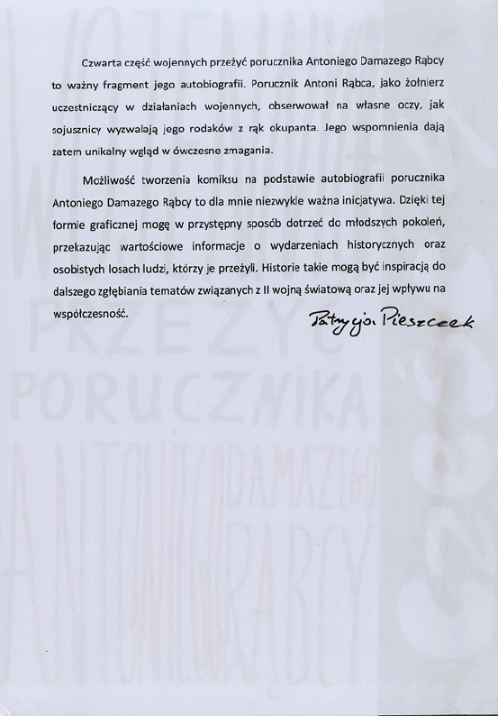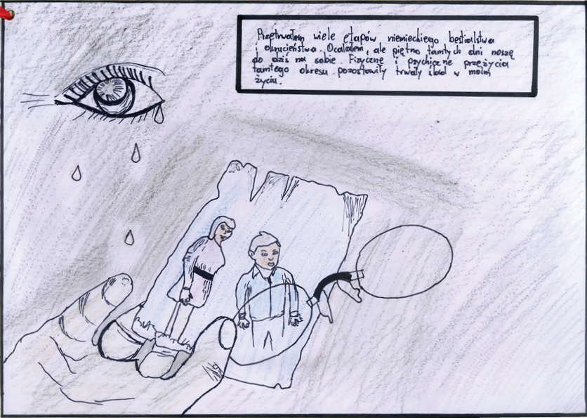 Patrycja Pieszczek, Zespół Szkół Plastycznych im. Piotra Michałowskiego w Rzeszowie Liceum Sztuk Plastycznych, tytuł pracy: Część czwarta wojennych przeżyć porucznika Antoniego Damazego Rąbcy,