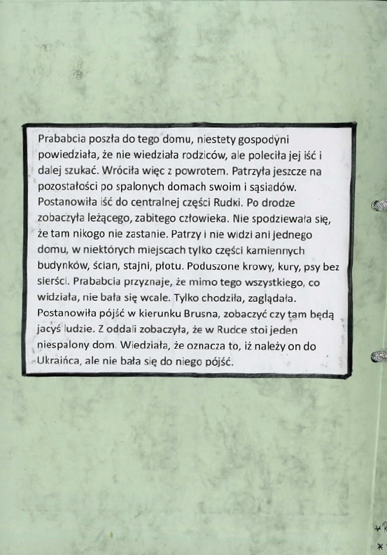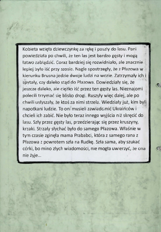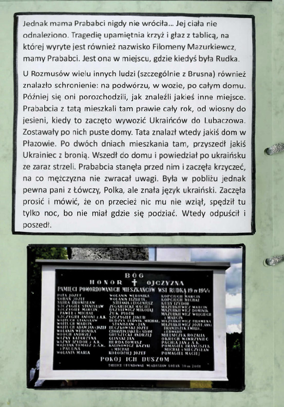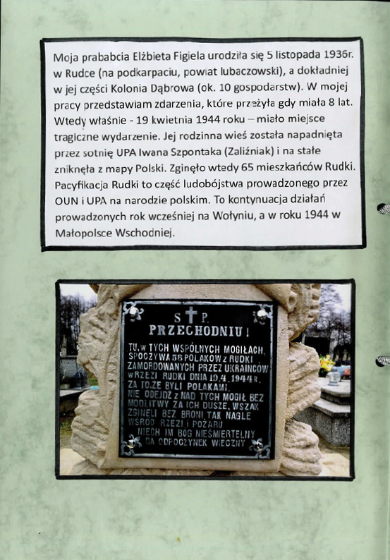 Klaudia Tkacz, Zespół Szkół w Żołyni, tytuł pracy: Rudka – wieś, która zniknęła z krajobrazu Polski na zawsze,