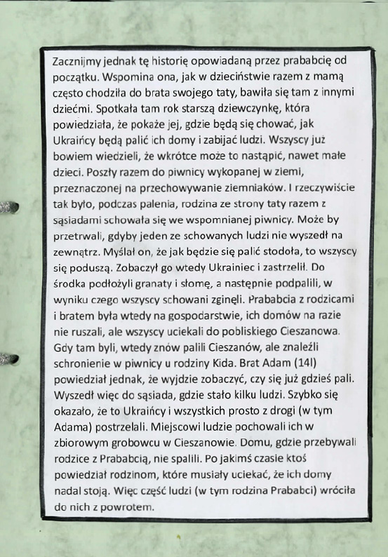 Mateusz Bzorek, Publiczna Katolicka Szkoła Podstawowa im. św. Jana Pawła II w Tarnobrzegu, tytuł pracy: Historia prababci Anny Król, opiekun: p. Agnieszka Kosior