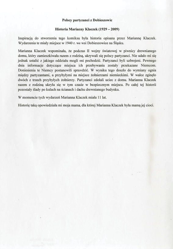 Nikola Kryta, Zespół Szkół Ekonomicznych im. Komisji Edukacji Narodowej w Brzozowie, tytuł pracy: Polscy partyzanci z Dobieszowic,