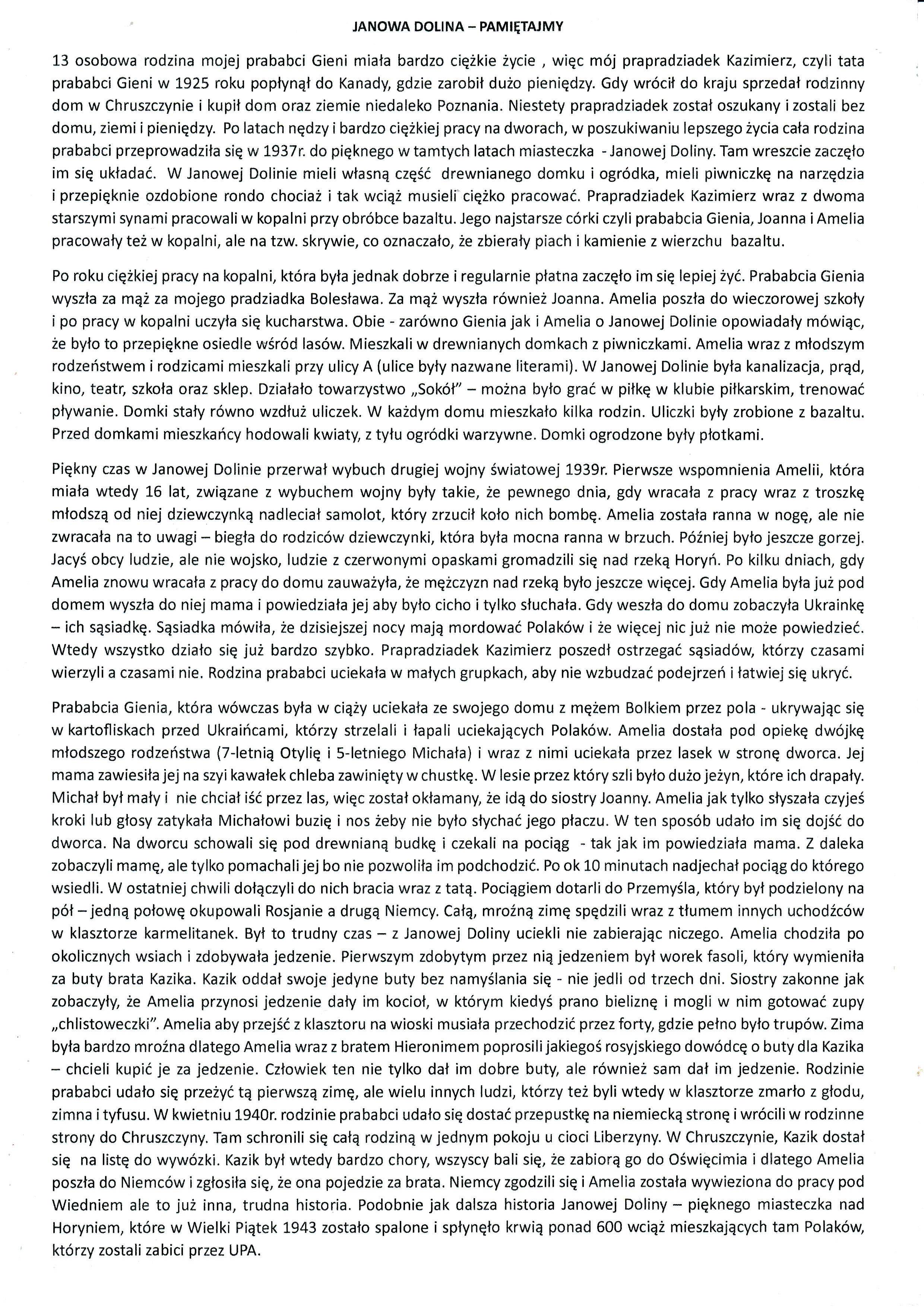 Maksymilian Januś, Szkoła Podstawowa nr 5 im. Bohaterów 27 P.P. w Rzeszowie, tytuł pracy: Janowa Dolina – pamiętajmy,