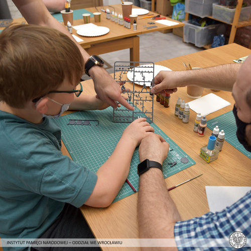 W poniedziałek w przytulnych wnętrzach Bolter Cafe gościliśmy najmłodszych sympatyków modelarstwa (grupa 8–11 lat). Już podczas poświęconego bitwie o Tobruk wystąpienia Przemysława Mandeli z Oddziałowego Biura Upamiętniania Walk i Męczeństwa nasi uczestnicy popisali się wyborną znajomością zagadnień wojskowych. Status adeptów najwyższych nadziei potwierdzili podczas prac modelarskich, co zostało przez nas – jak widać poniżej – skwapliwie fotograficznie wyzyskane. Do zabawy udało się nam wciągnąć również towarzyszących uczestnikom opiekunów – radości płynącej z międzypokoleniowej współpracy nie było niemal końca.