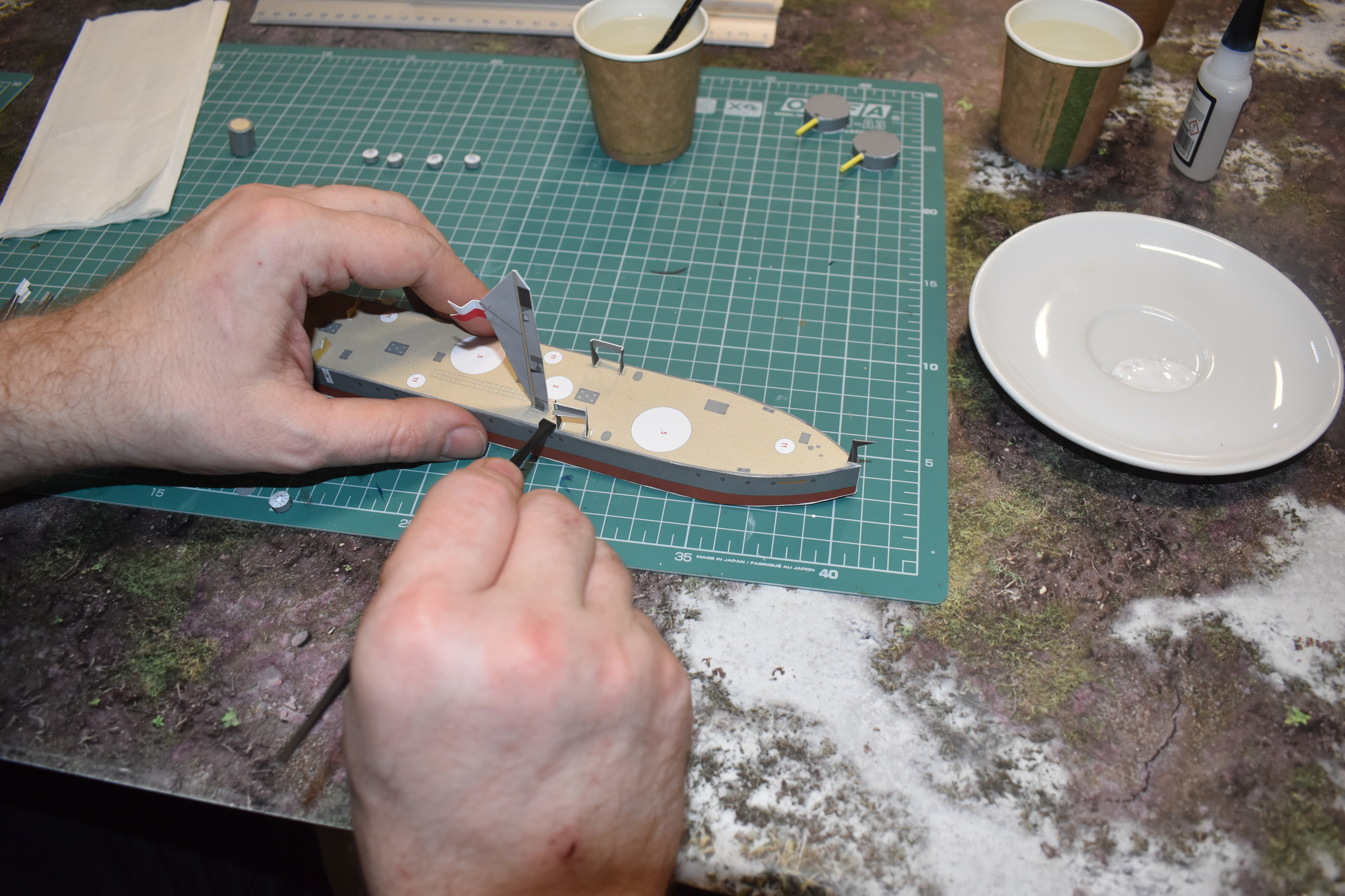Dzień Marynarza Rzecznego został ustanowiony na pamiątkę pierwszego znaczącego osiągnięcia Flotylli Pińskiej podczas wojny polsko-bolszewickiej – udziału w zdobyciu Horodyszcza. Dla uczczenia święta 1 lipca do Bolter Cafe zaproszona została grupa doświadczonych modelarzy, której członkowie otrzymali zadanie sklejenia tekturowego modelu monitora rzecznego ORP „Warszawa”, wydanego przez Oddział IPN we Wrocławiu w 2020 roku. Prace nad miniaturą zasłużonego okrętu poprzedziła prelekcja historyczna, poświęcona dziejom wojskowej żeglugi śródlądowej w II Rzeczypospolitej i historii ORP „Warszawa”, którą przedstawił Piotr Ruciński z OBEN IPN Wrocław. Zaproszeni goście zademonstrowali wielką biegłość w operowaniu modelarskim instrumentarium, czego efekty – doskonale odwzorowane monitory – można podziwiać na zdjęciach poniżej.