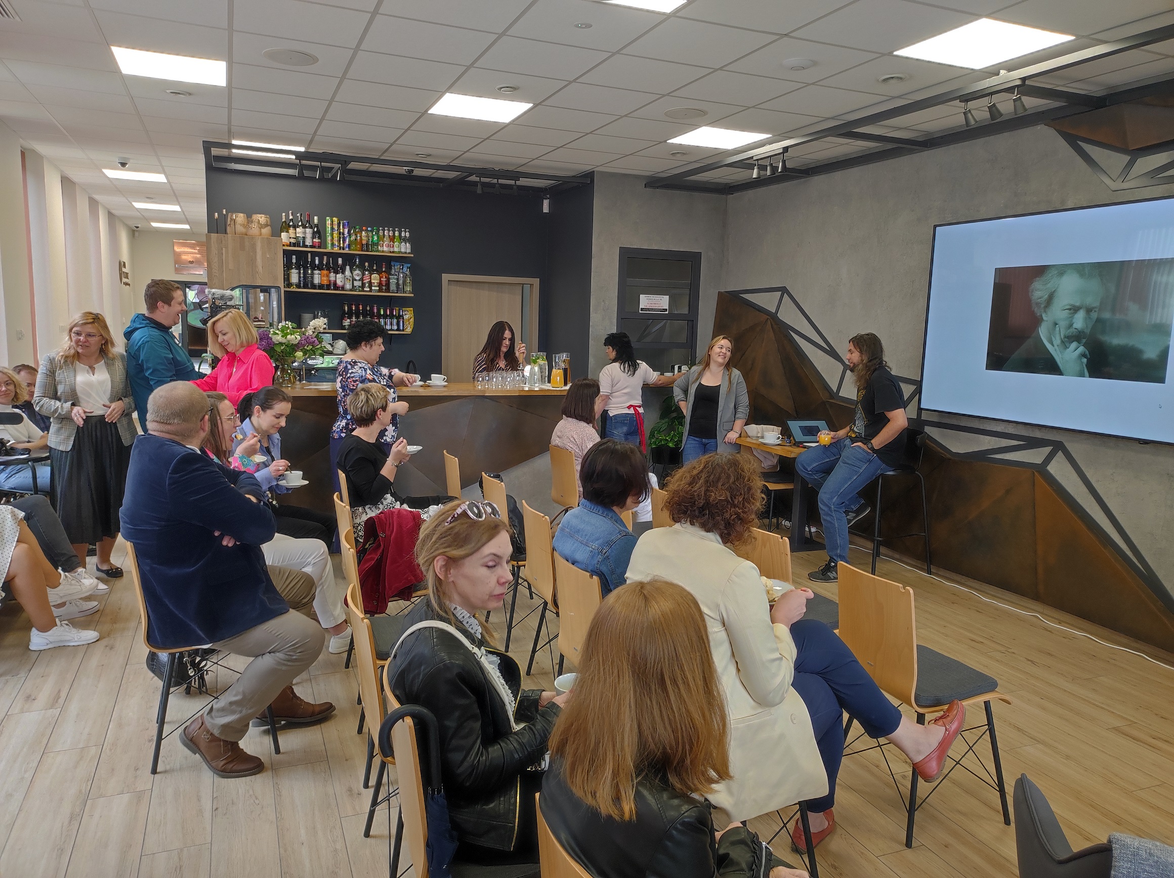 Pokaż opis pliku Fot.9 Wykład w Wiatraku polkowickim wygłoszonym przez Miłosza Szymańskiego na temat życia artysty. -