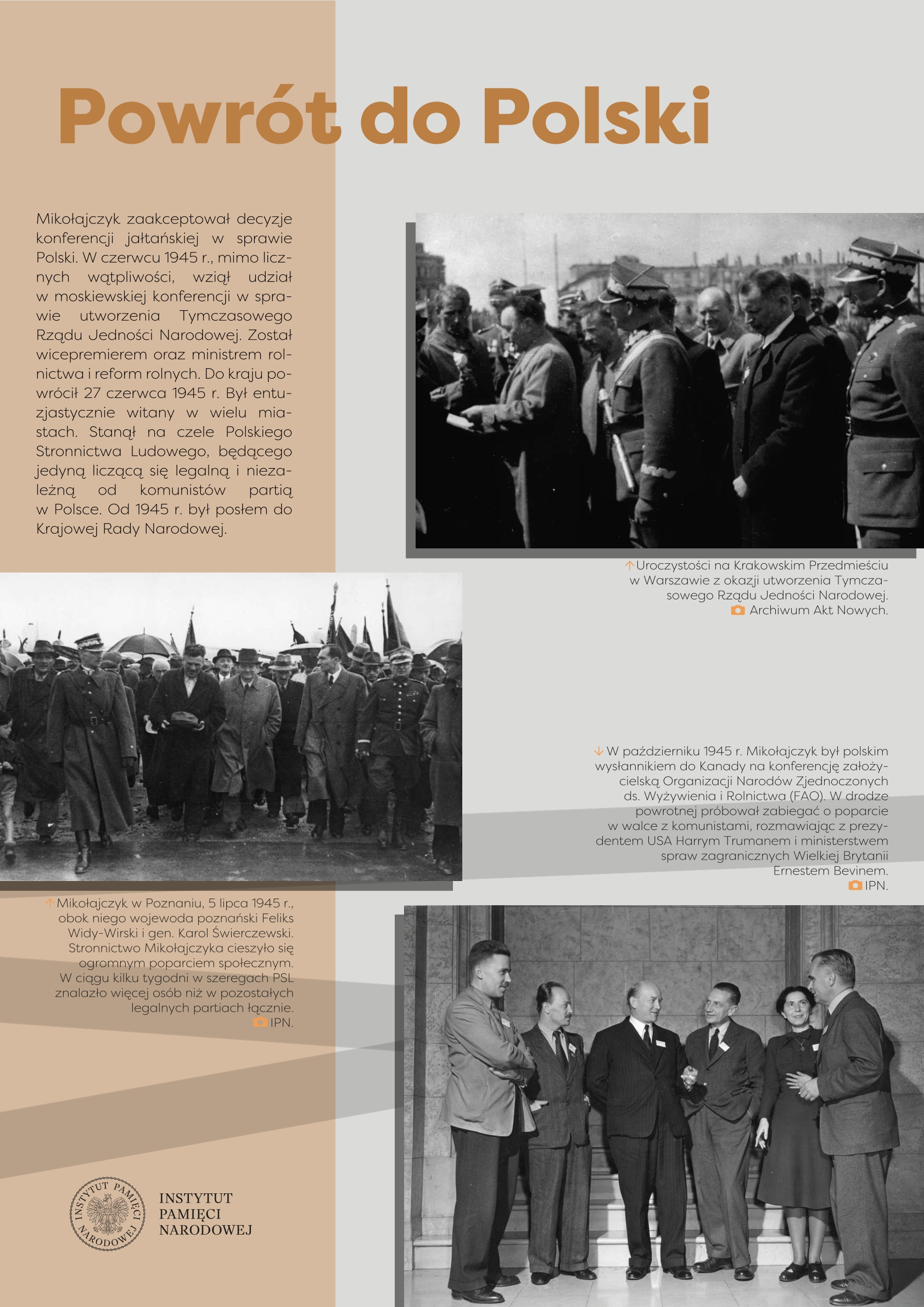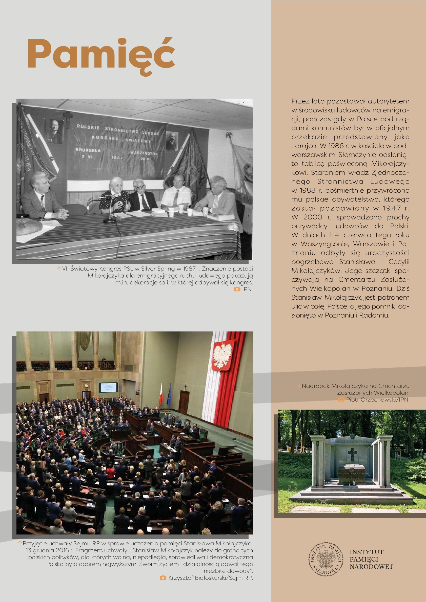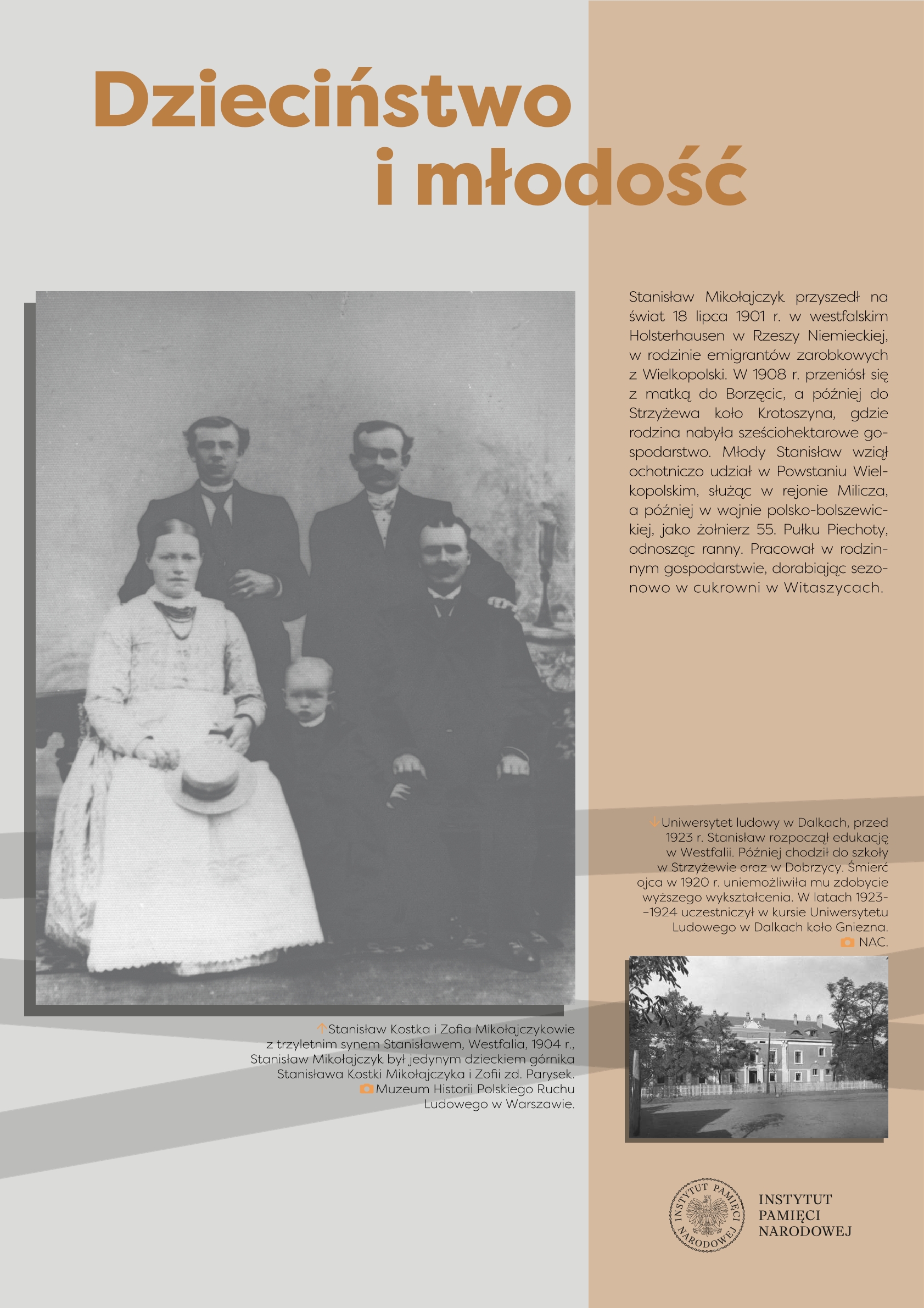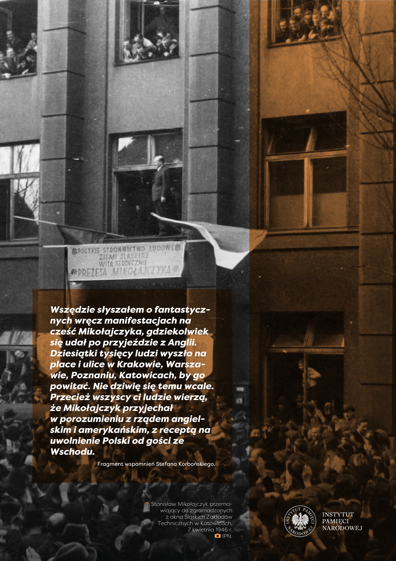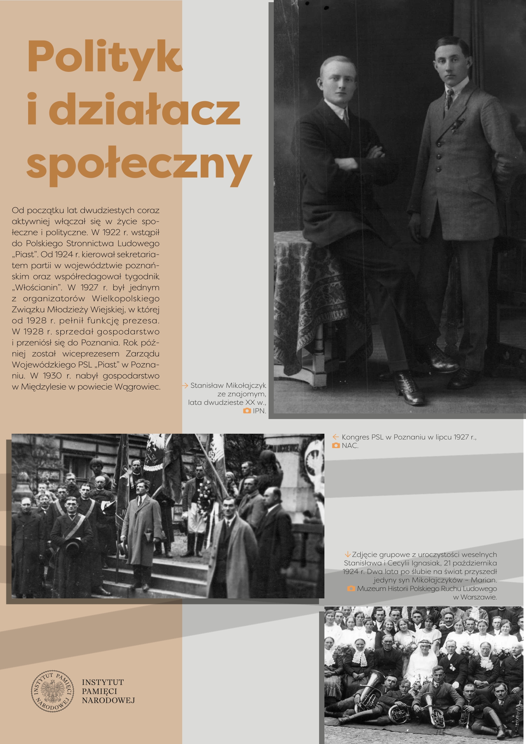Wystawa przygotowana przez Referat Edukacji Narodowej Delegatury IPN w Kielcach ukazuje życie i działalność Stanisława Mikołajczyka, jednego z najważniejszych polityków polskich trzeciej i czwartej dekady XX w. Przed 1939 r. przewodził Stronnictwu Ludowemu, największej partii politycznej, opozycyjnej wobec rządzącej sanacji. W latach II wojny światowej znalazł się we władzach RP na Uchodźstwie, pełniąc funkcję premiera (1943–1944). Po zakończeniu wojny stanął na czele Polskiego Stronnictwa Ludowego – dążył do przeprowadzenia wolnych wyborów, w ten sposób próbując odsunąć komunistów od władzy. Fałszerstwa wyborcze, a następnie realna obawa przed represjami zmusiły go do powtórnej emigracji. Do końca życia pozostał krytykiem komunizmu i symbolem walki o uniezależnienie Polski od Związku Sowieckiego.