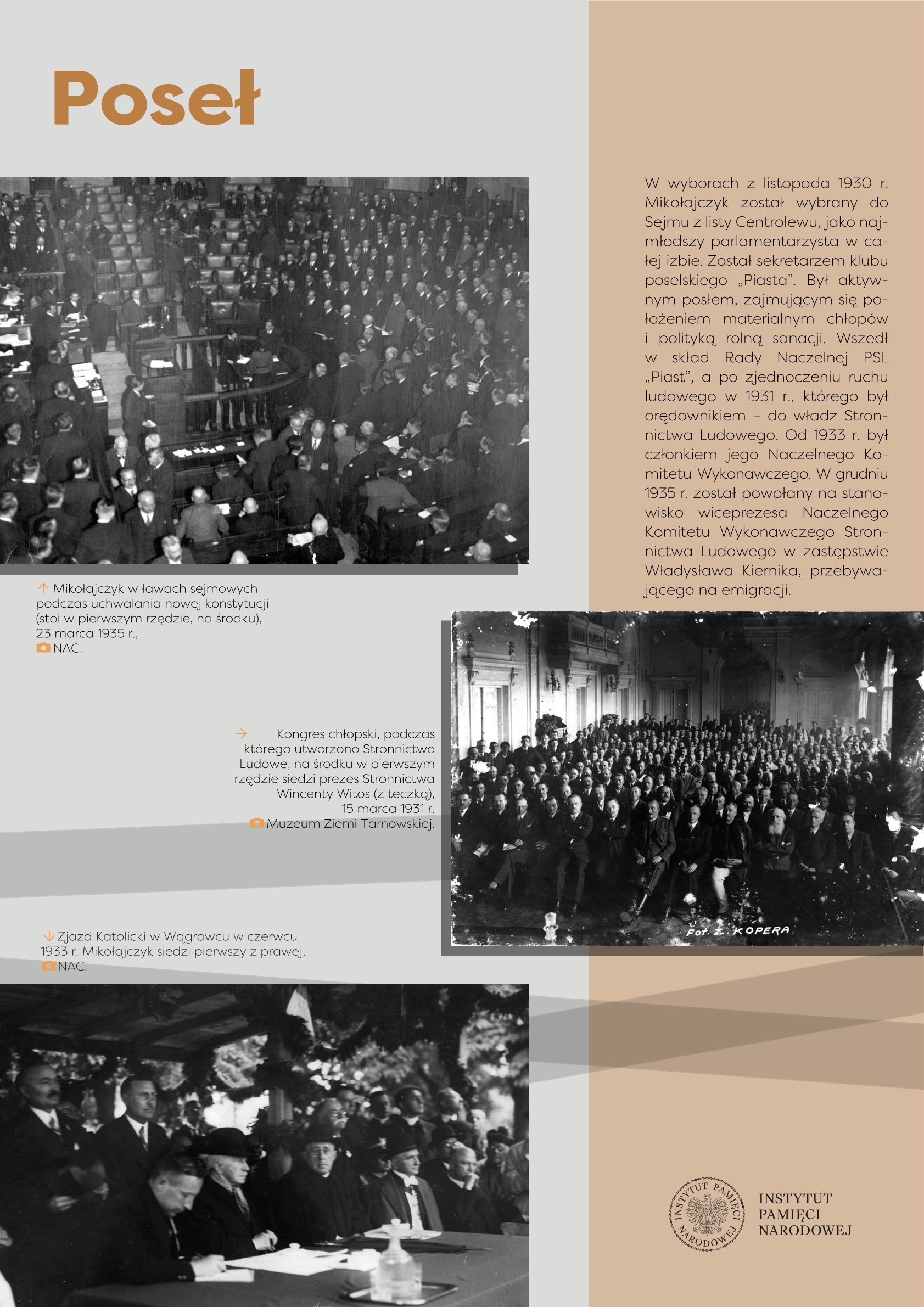 W wystawie wykorzystano materiały pochodzące ze zbiorów: Archiwum Akt Nowych, Archiwum Narodowego w Krakowie, Biblioteki Narodowej, Instytutu Pamięci Narodowej, Muzeum Historii Polskiego Ruchu Ludowego w Warszawie, Muzeum Ziemi Tarnowskiej, Narodowego Archiwum Cyfrowego, Sejmu RP.
