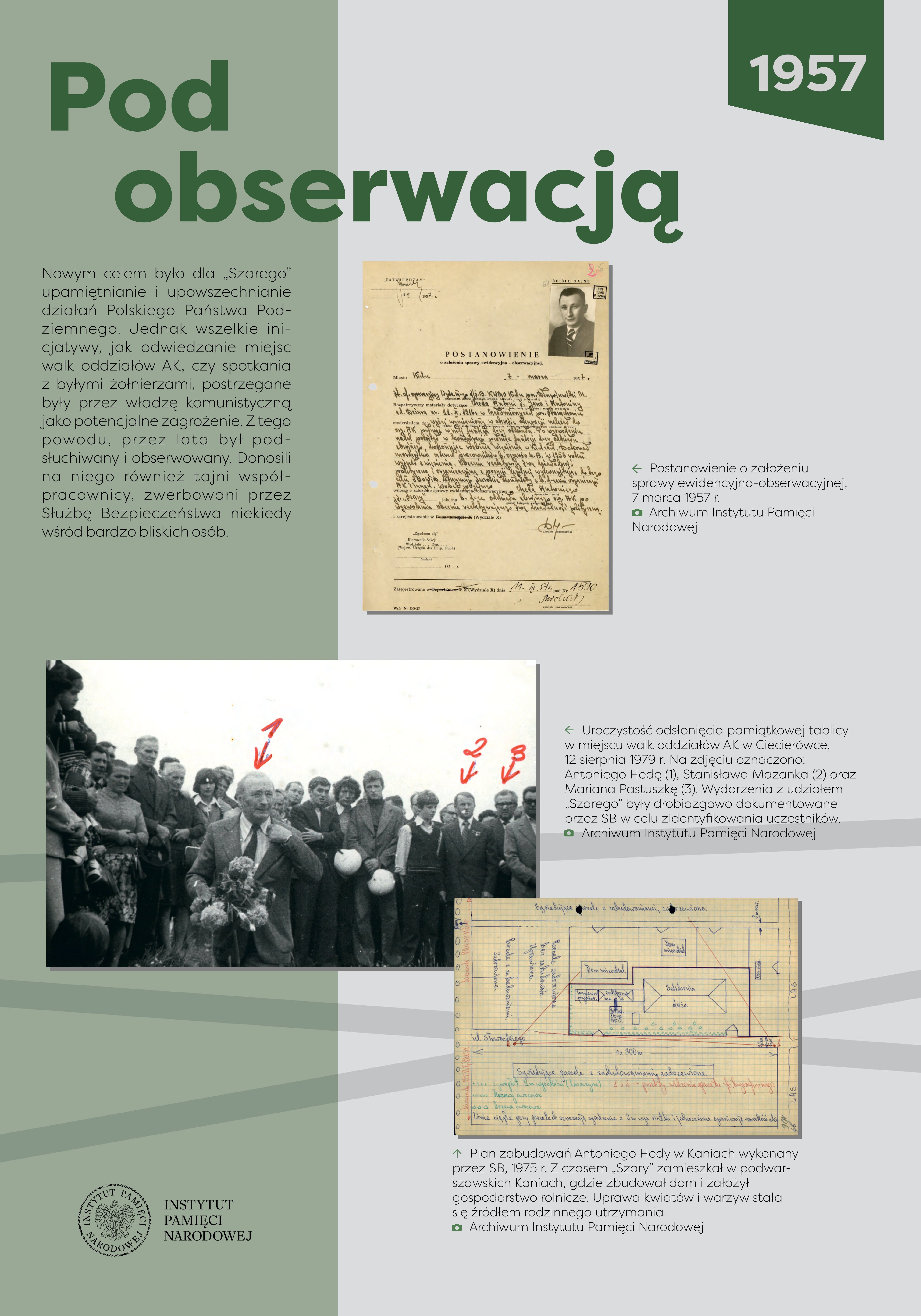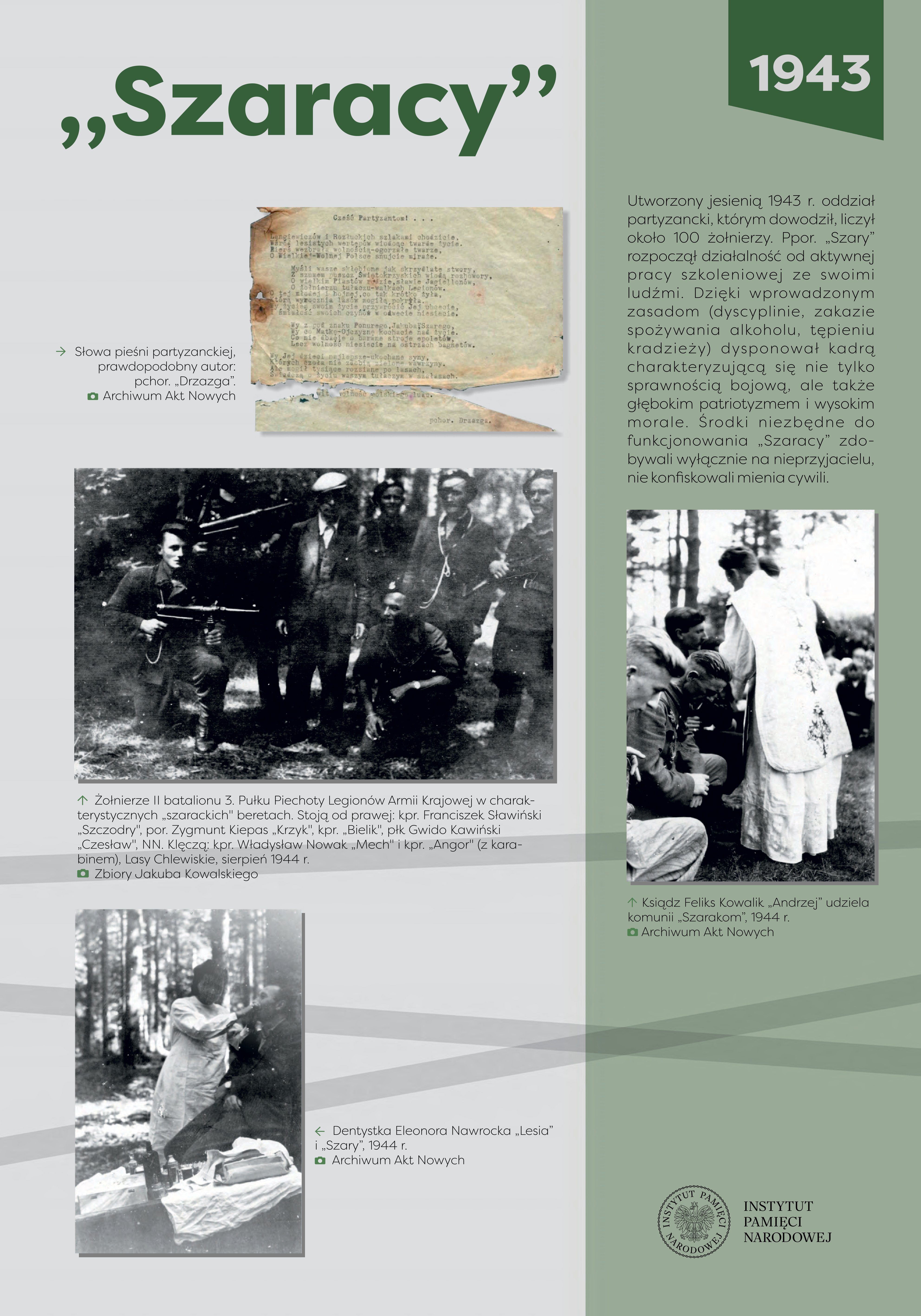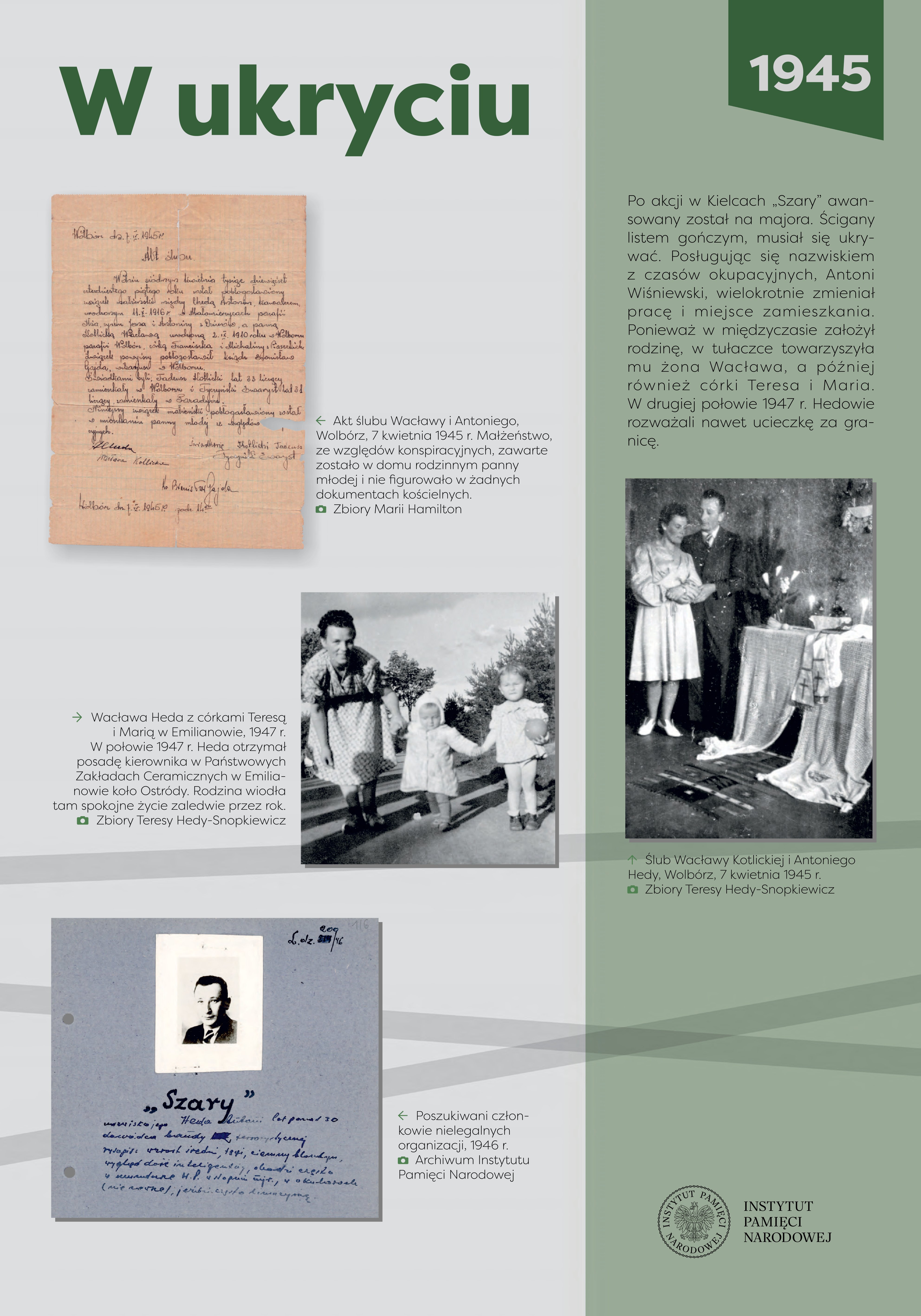 Na wystawie wykorzystano zdjęcia autorstwa: Edyty Krężołek, Mariana Langera, Marcina Węglińskiego oraz dokumenty i fotografie ze zbiorów: Marii Hamilton, Teresy Hedy-Snopkiewicz, Jakuba Kowalskiego, Archiwum Akt Nowych, Archiwum Instytutu Pamięci Narodowej, Archiwum Państwowego w Radomiu, Centralnego Archiwum Wojskowego, Muzeum Armii Krajowej, Muzeum Historii Kielc, Muzeum Hymnu Narodowego w Będominie, Muzeum Regionalnego w Iłży, Narodowego Archiwum Cyfrowego i Szkoły Podstawowej im. gen. bryg. Antoniego Hedy-Szarego w Radoszycach.