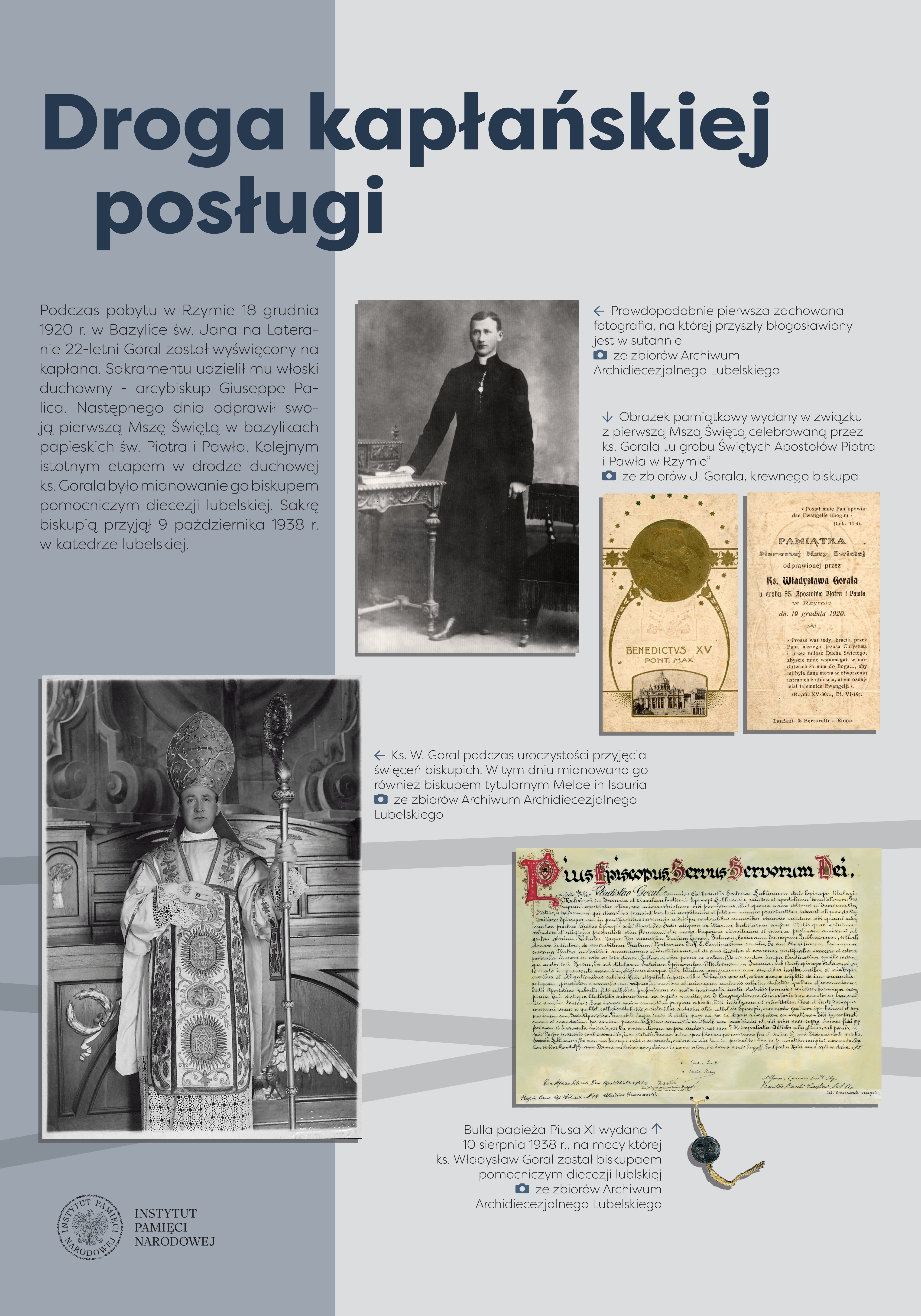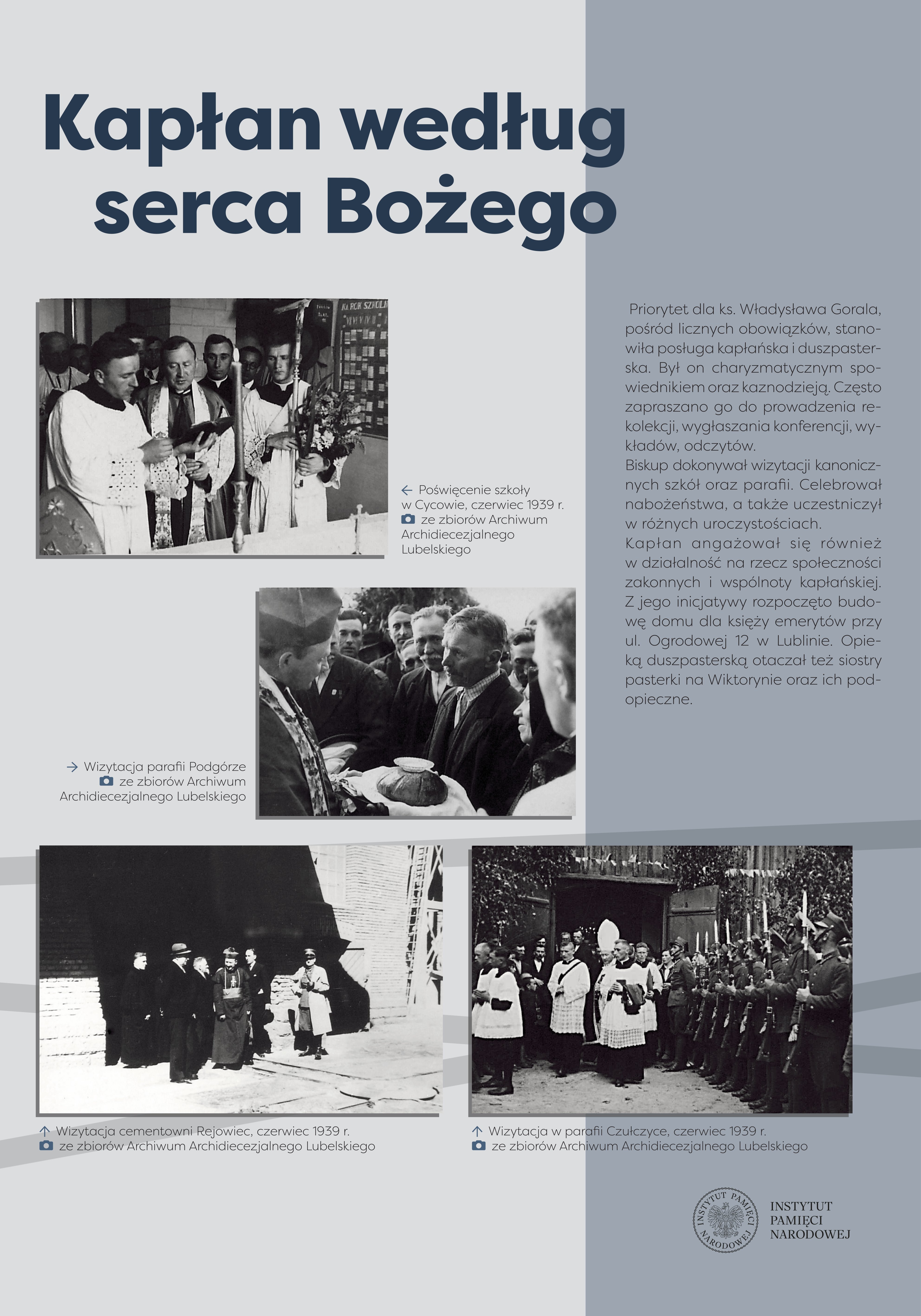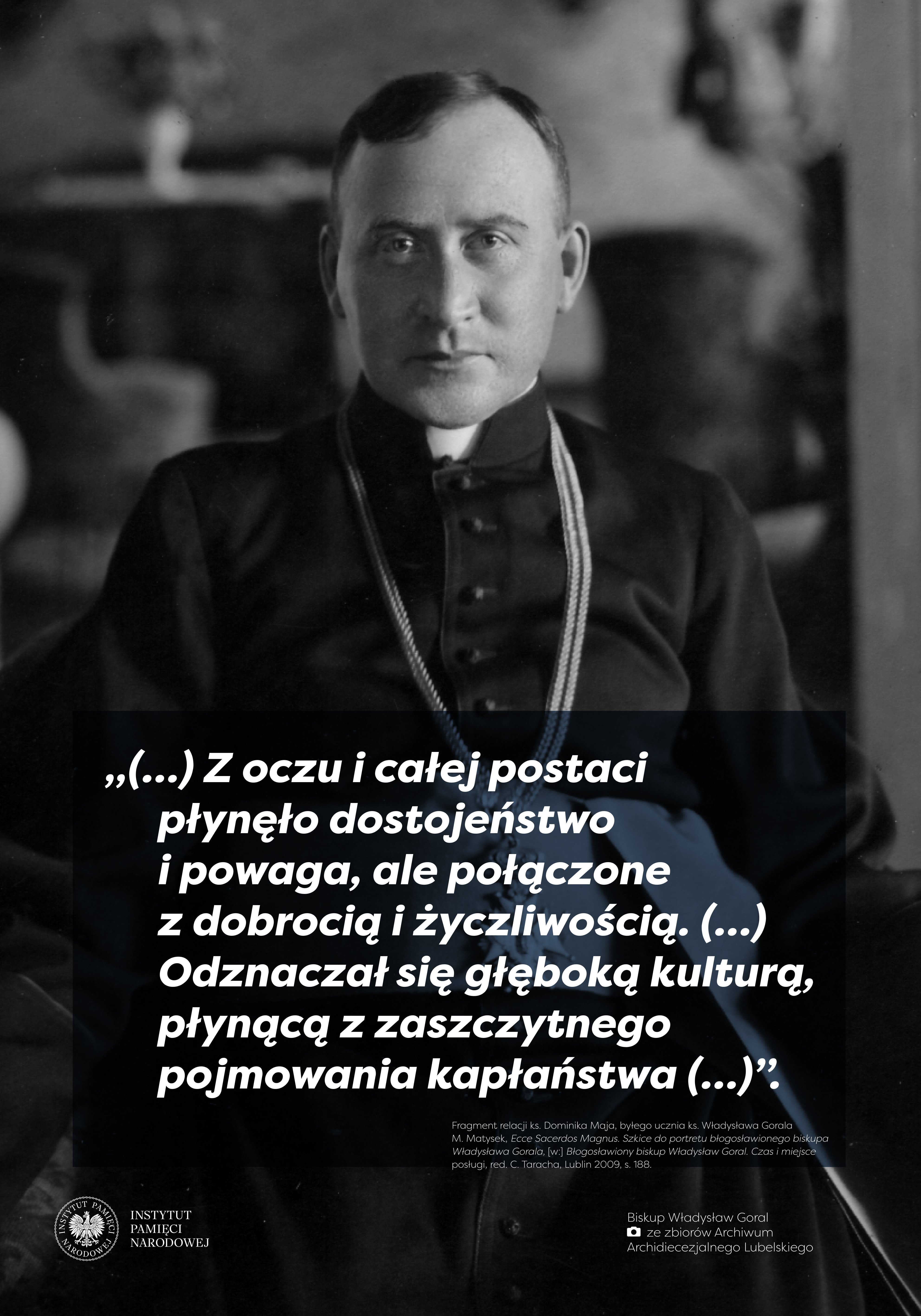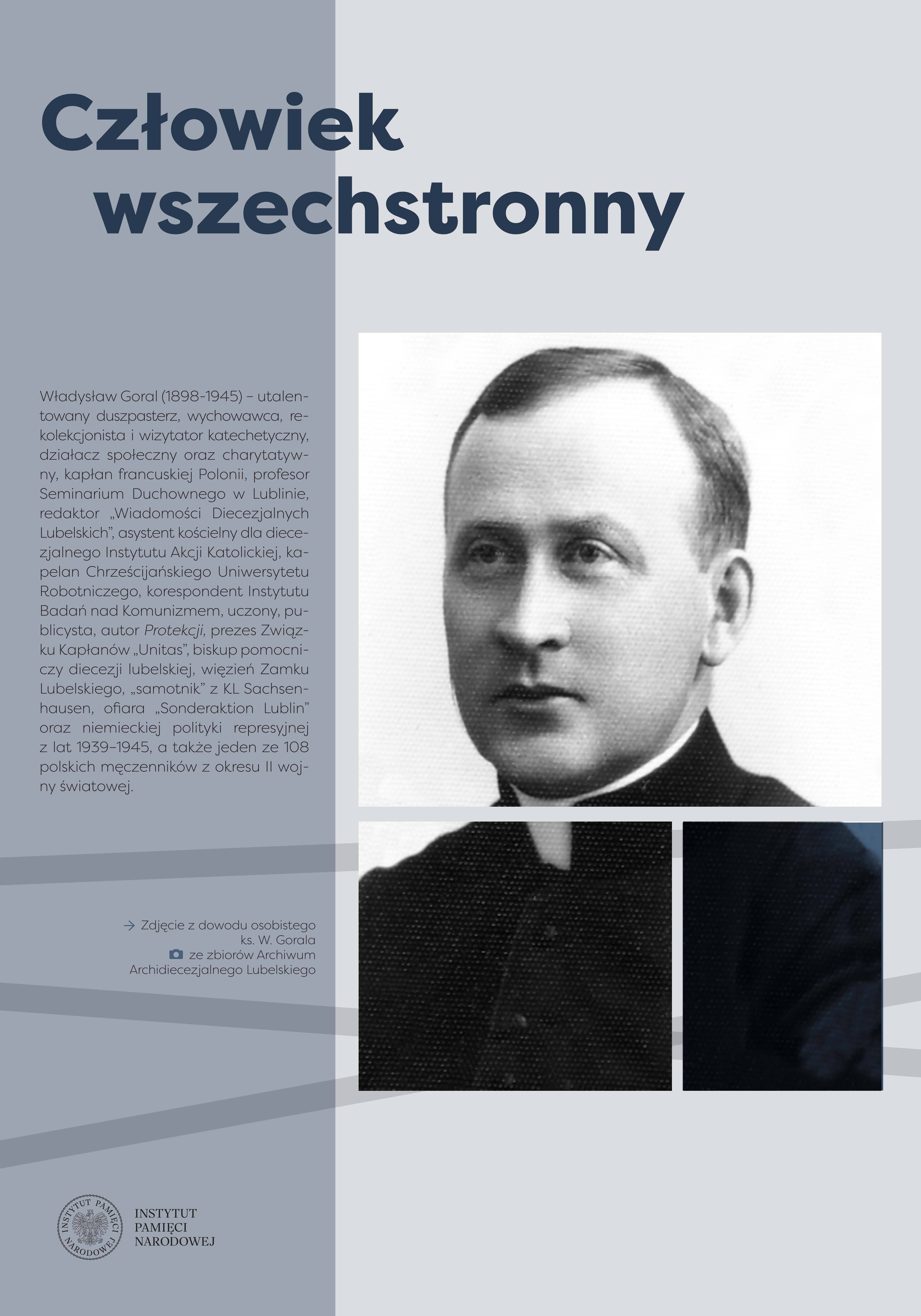 Biograficzna wystawa elementarna przygotowana w Oddziałowym Biurze Edukacji Narodowej IPN w Lublinie poświęcona jest osobie bł. biskupa Władysława Gorala - człowieka wszechstronnego; duszpasterza, wychowawcy, rekolekcjonisty i wizytatora katechetycznego, działacza społecznego oraz charytatywnego profesora Seminarium Duchownego w Lublinie, kapłana francuskiej Polonii, asystenta kościelnego dla diecezjalnego Instytutu Akcji Katolickiej, redaktora Wiadomości Diecezjalnych Lubelskich, uczonego i publicystę, autora „Protekcji”, prezesa Związku Kapłanów „Unitas”, biskupa pomocniczego diecezji lubelskiej, więźnia Zamku Lubelskiego, „samotnika” z KL Sachsenhausen, jednego ze 108 polskich męczenników z czasów II wojny światowej, ofiarę prześladowania Kościoła w Polsce w latach 1939-1945. Na końcowych planszach przedstawiono współczesne formy upamiętnienia postaci Duchownego.