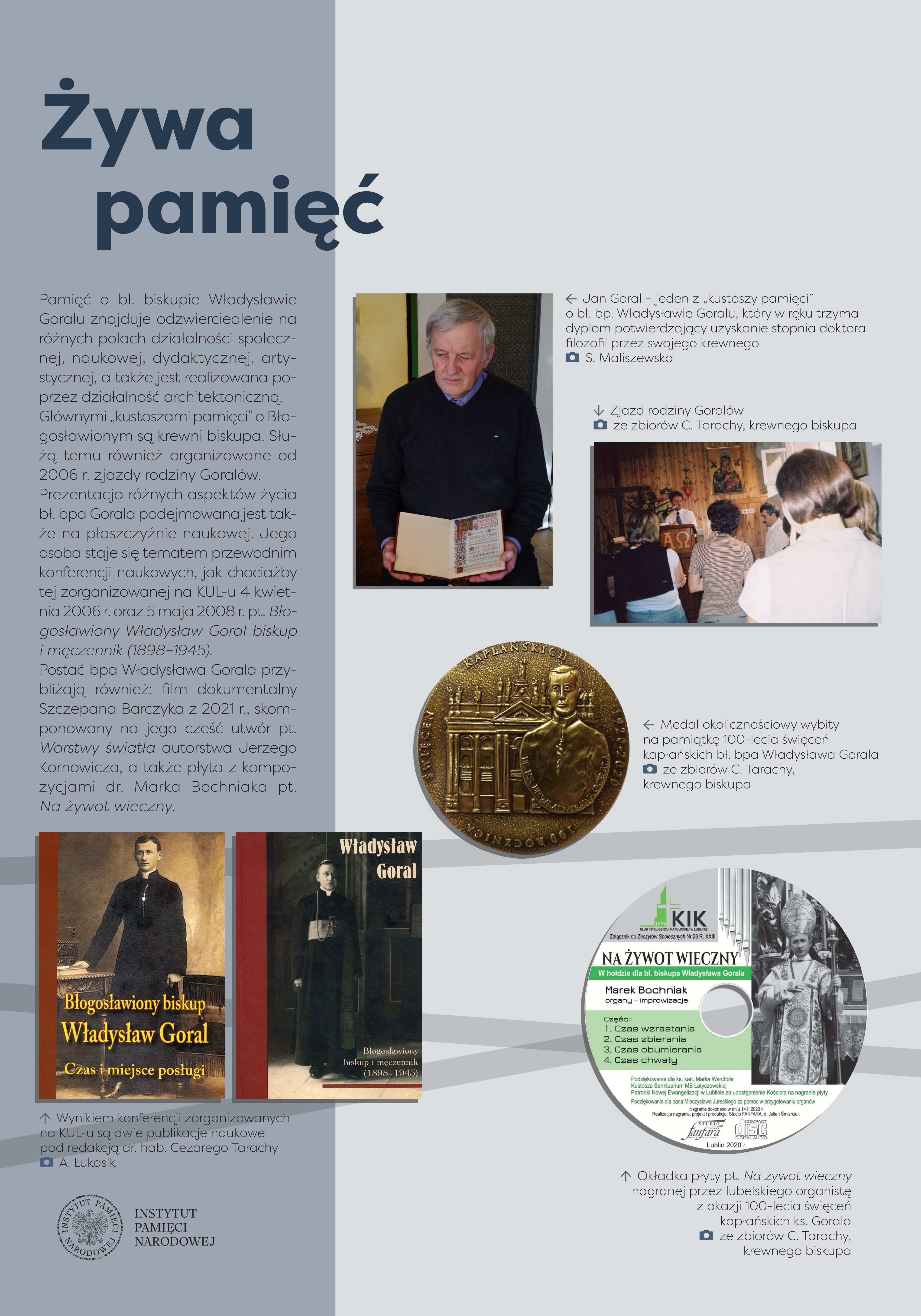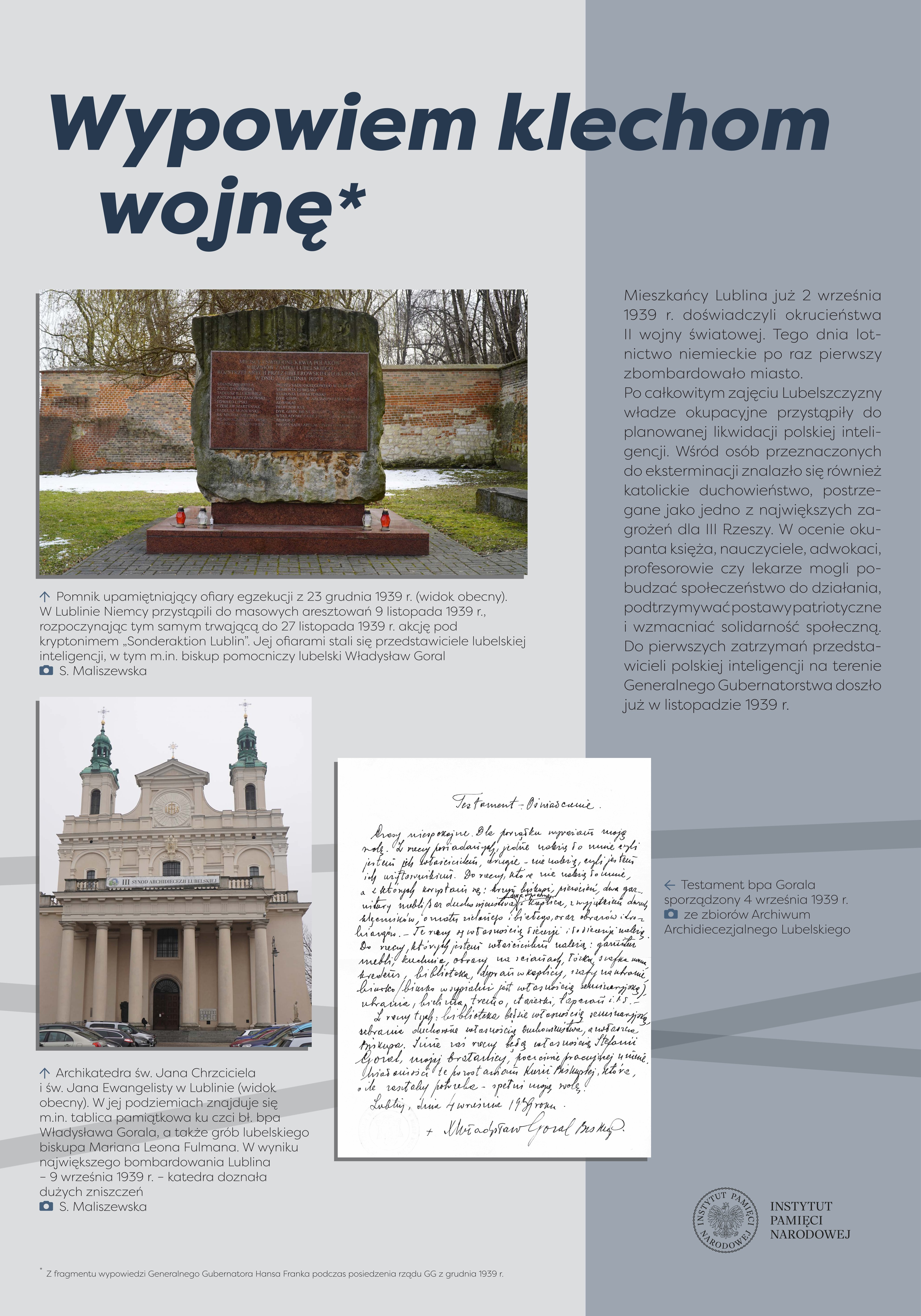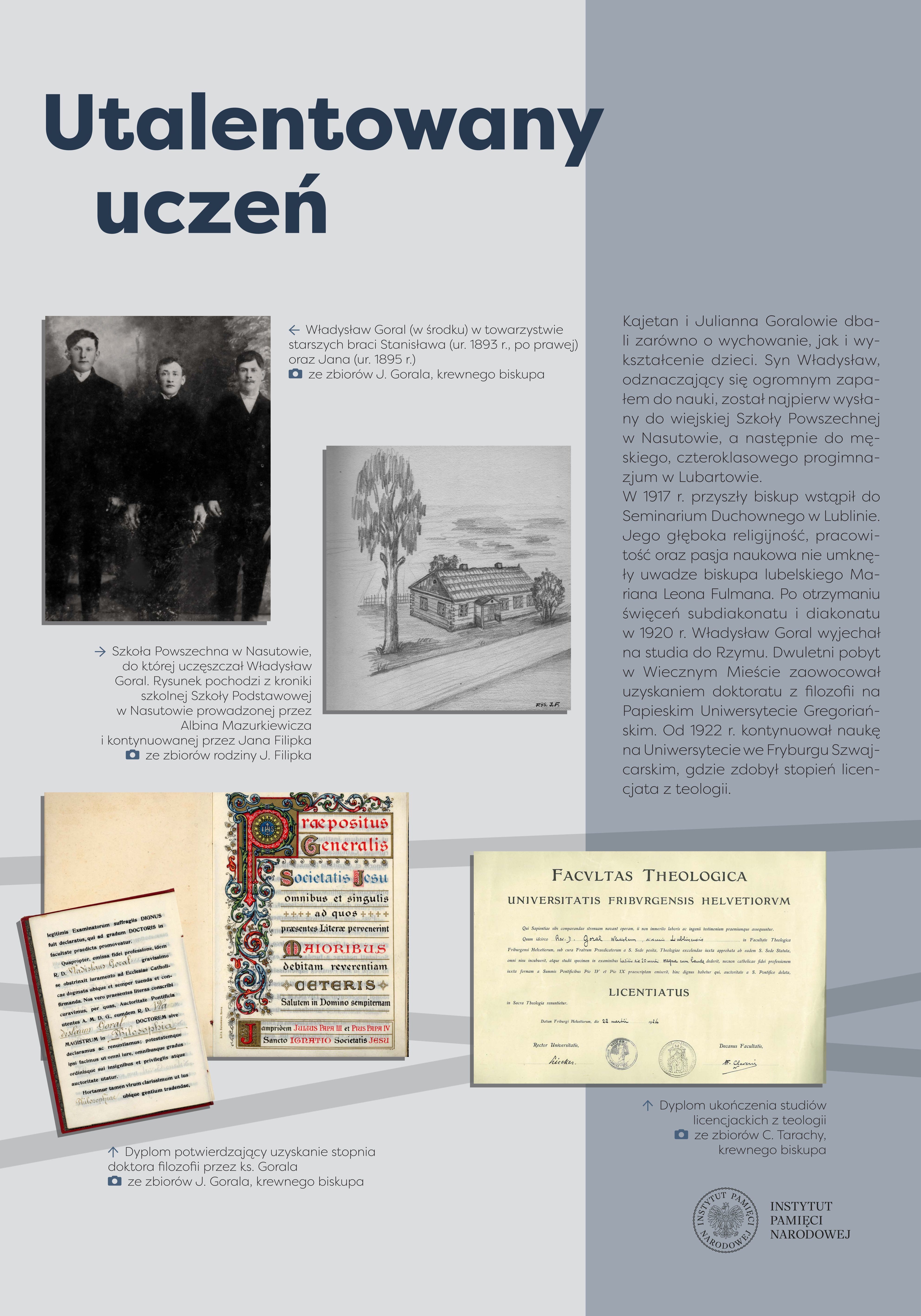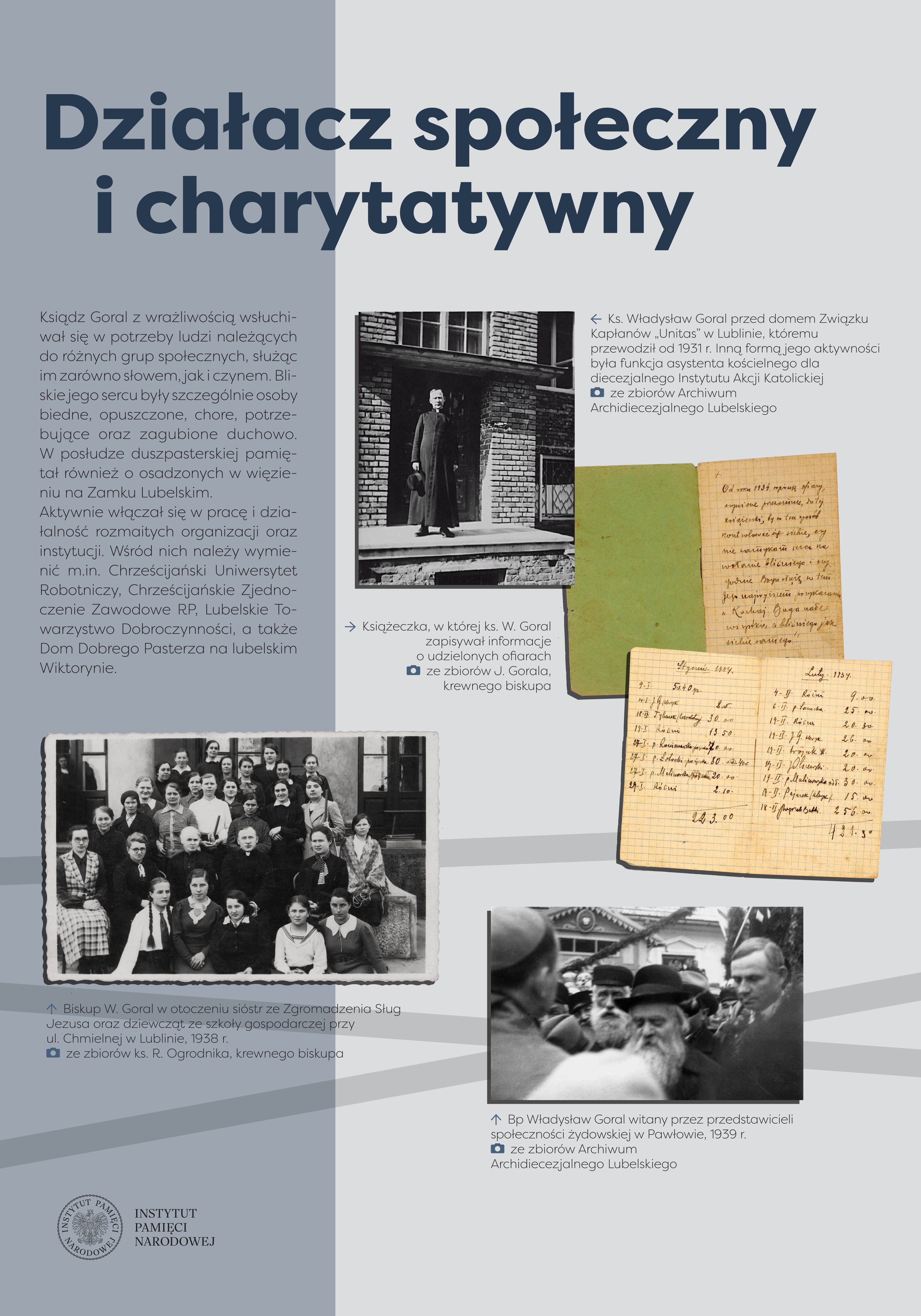 Biograficzna wystawa elementarna przygotowana w Oddziałowym Biurze Edukacji Narodowej IPN w Lublinie poświęcona jest osobie bł. biskupa Władysława Gorala - człowieka wszechstronnego; duszpasterza, wychowawcy, rekolekcjonisty i wizytatora katechetycznego, działacza społecznego oraz charytatywnego profesora Seminarium Duchownego w Lublinie, kapłana francuskiej Polonii, asystenta kościelnego dla diecezjalnego Instytutu Akcji Katolickiej, redaktora Wiadomości Diecezjalnych Lubelskich, uczonego i publicystę, autora „Protekcji”, prezesa Związku Kapłanów „Unitas”, biskupa pomocniczego diecezji lubelskiej, więźnia Zamku Lubelskiego, „samotnika” z KL Sachsenhausen, jednego ze 108 polskich męczenników z czasów II wojny światowej, ofiarę prześladowania Kościoła w Polsce w latach 1939-1945. Na końcowych planszach przedstawiono współczesne formy upamiętnienia postaci Duchownego.