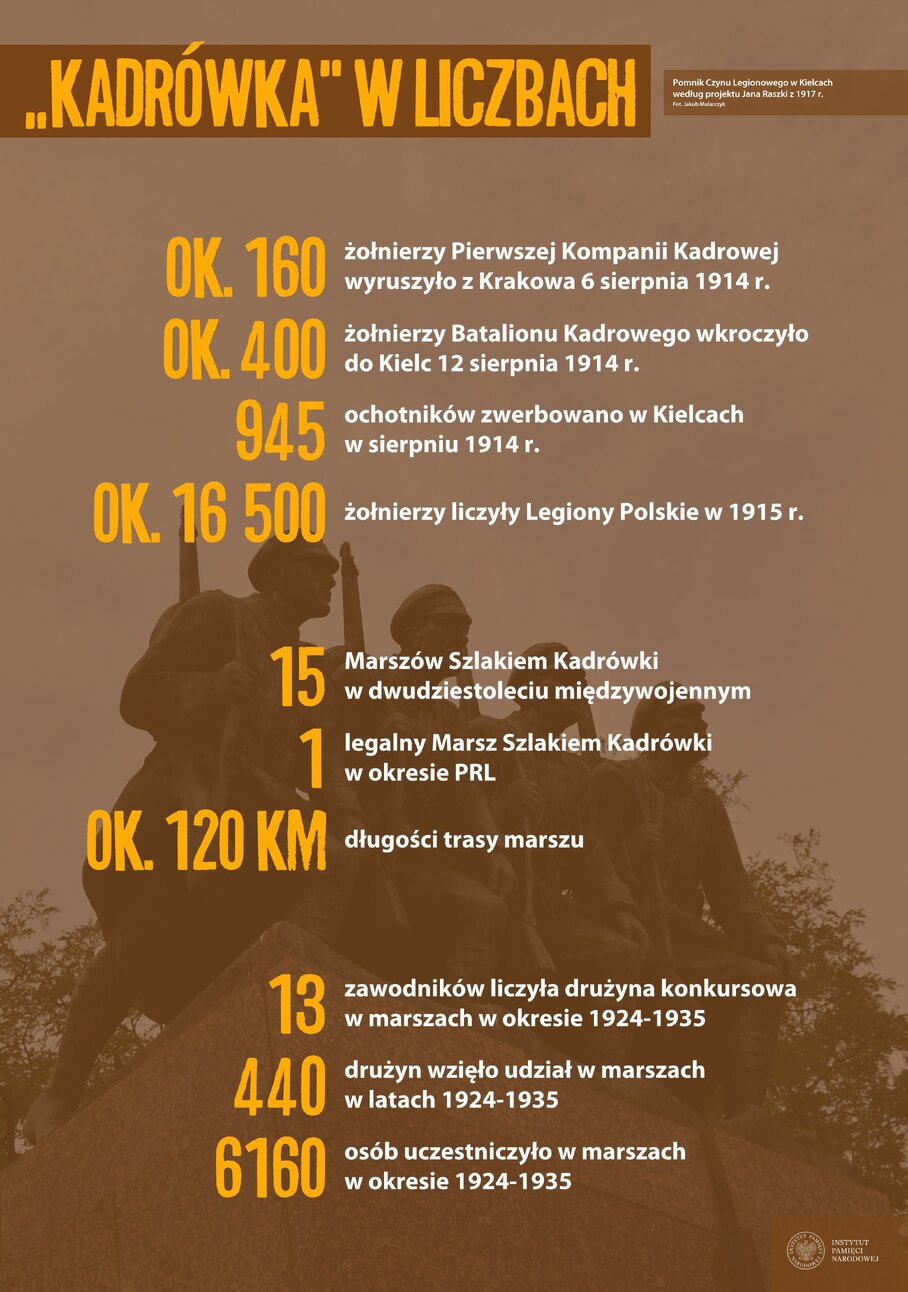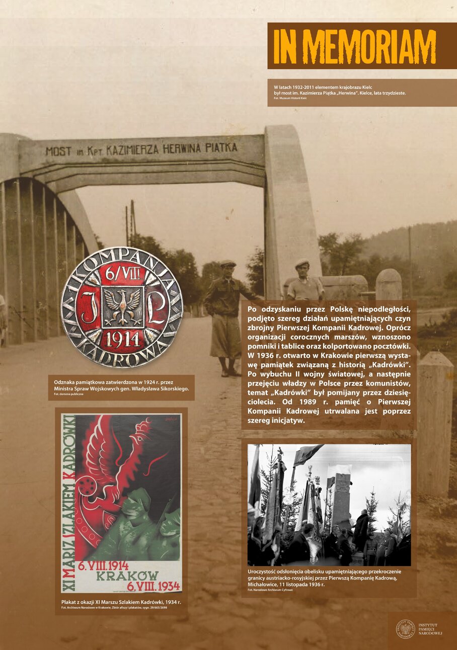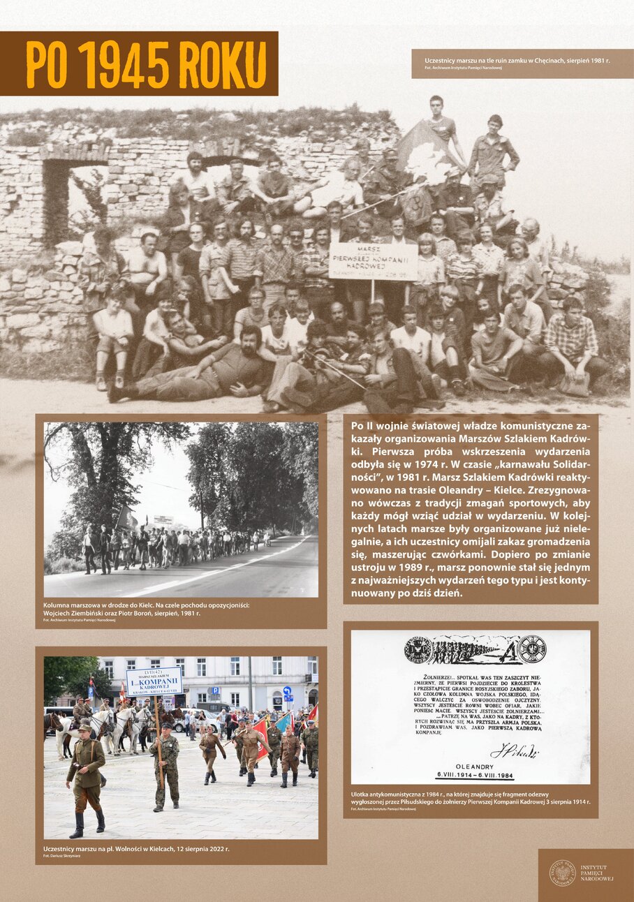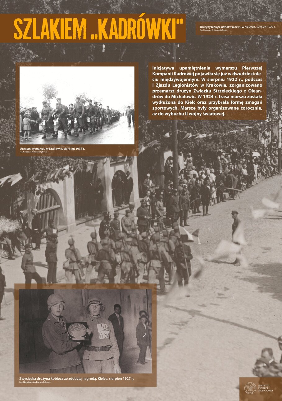 Wystawa elementarna przygotowana przez Referat Edukacji Narodowej w kieleckiej delegaturze Instytutu Pamięci Narodowej. W sposób chronologiczny prezentuje akcję zbrojną podjętą przez Pierwszą Kompanię Kadrową. Wystawa przybliża genezę powstania „Kadrówki”, jej drogę po wyruszeniu z krakowskich Oleandrów 6 sierpnia 1914 r., oraz pobyt Kompanii w Kielcach. Opowiada także o marszach szlakiem kadrówki – inicjatywie, która pierwszy raz na trasie Oleandry-Kielce została zrealizowana już w 1924 r., a w okresie dwudziestolecia międzywojennego była organizowana corocznie.