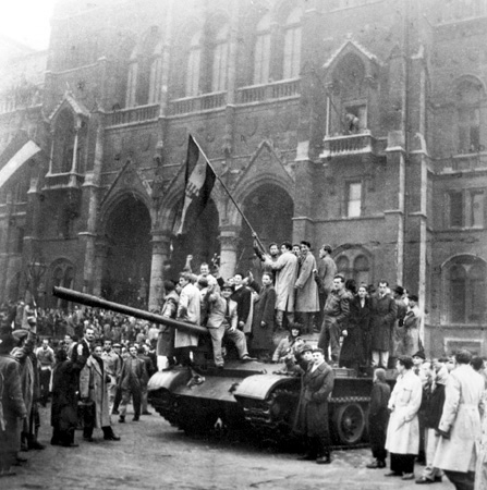 25 października 1956 r. węgierscy żołnierze przyłączyli się do uczestników wiecu przed gmachem Parlamentu. Bezpieka otworzyła ogień do zgromadzonych. Zginęło kilkaset osób.