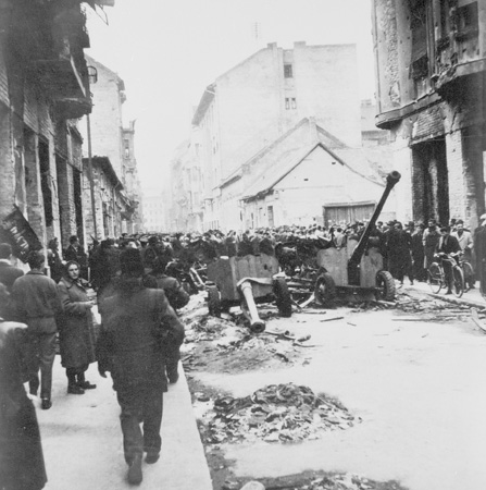 Armaty przeciwpancerne w zaułku przy kinie Corvina, w Budapeszcie, bronionym do 7 listopada.